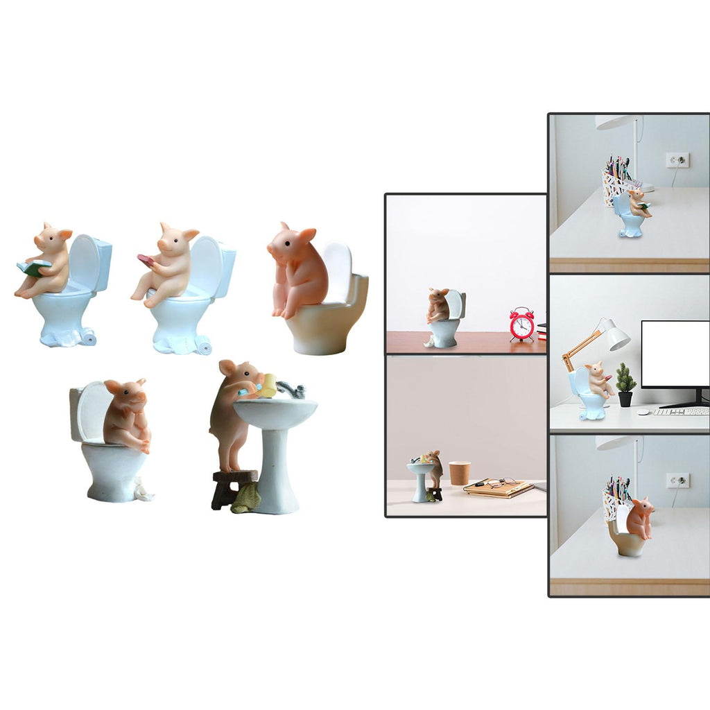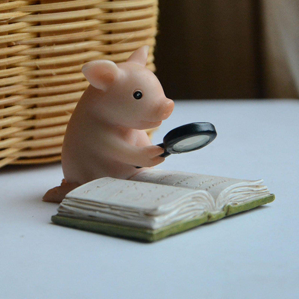 Maxbell Ornament Collectible Creative Crafts Mini Resin Gift Decorative Pig Figurine Reading Books