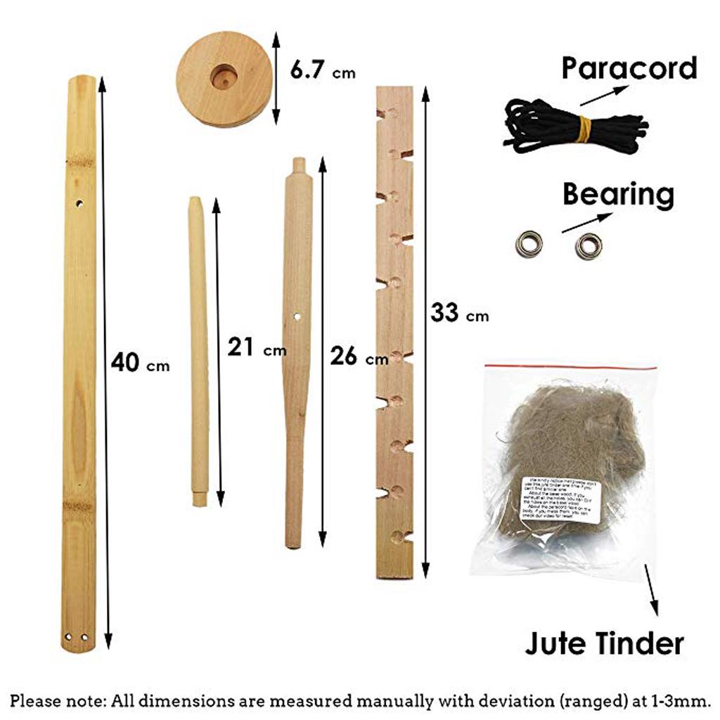 Packing includes hardwood fire bow, pre-notched fireboard, spindle,tinder, etc