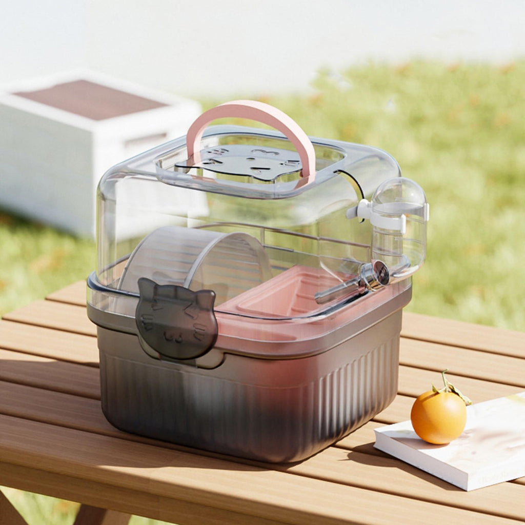 Maxbell Outgoing Hamster Cage Container Compact Pet Supplies for Holiday Guinea Home Pink