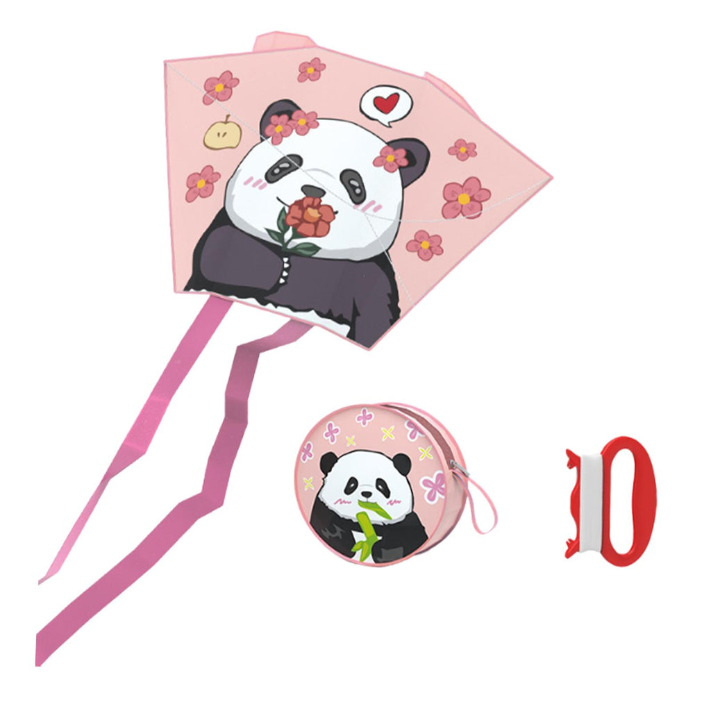 Maxbell Panda Kite Portable Boys Girls Flying Toy for Outdoor Game Grassland Garden Pink
