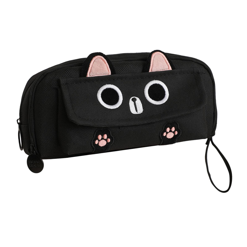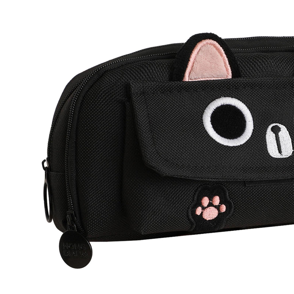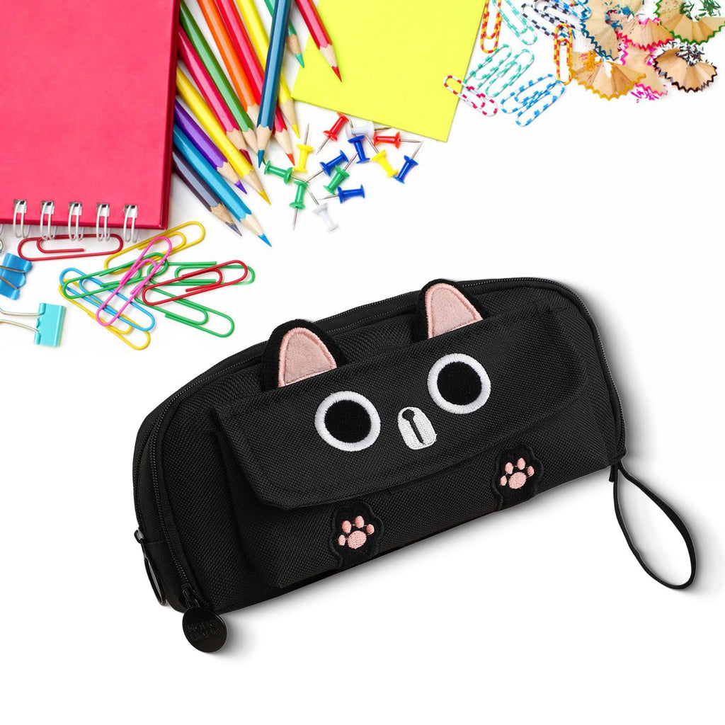 Maxbell Pencil Case Cat Cosmetic Bag for Boys Girls Children School, Office Supplies Black