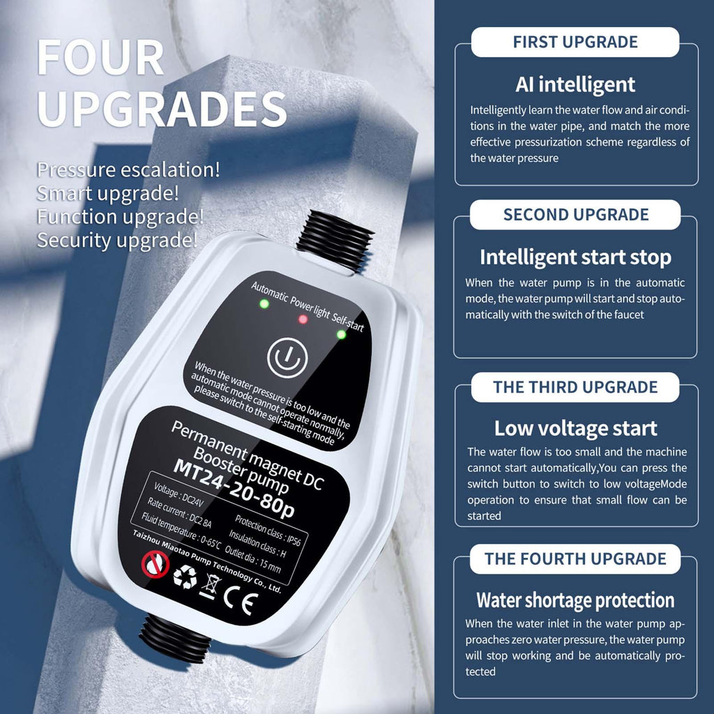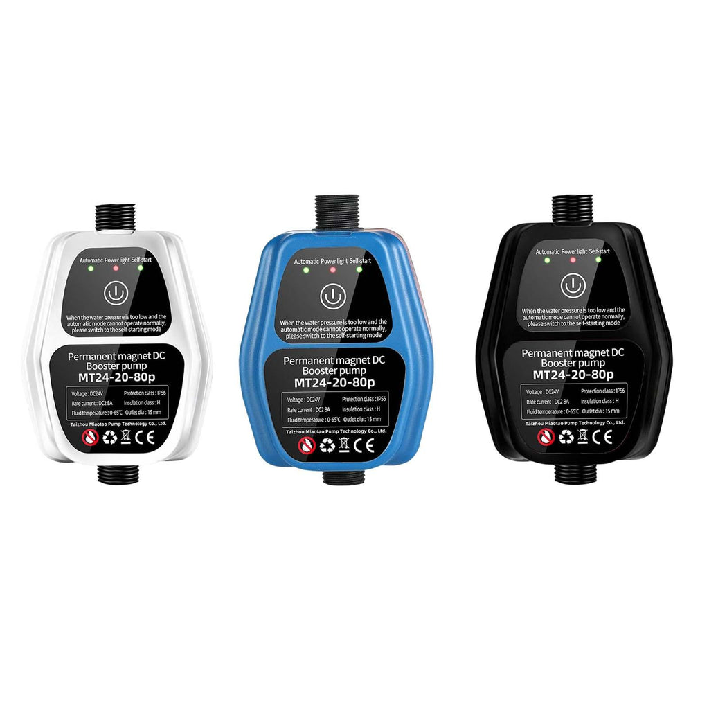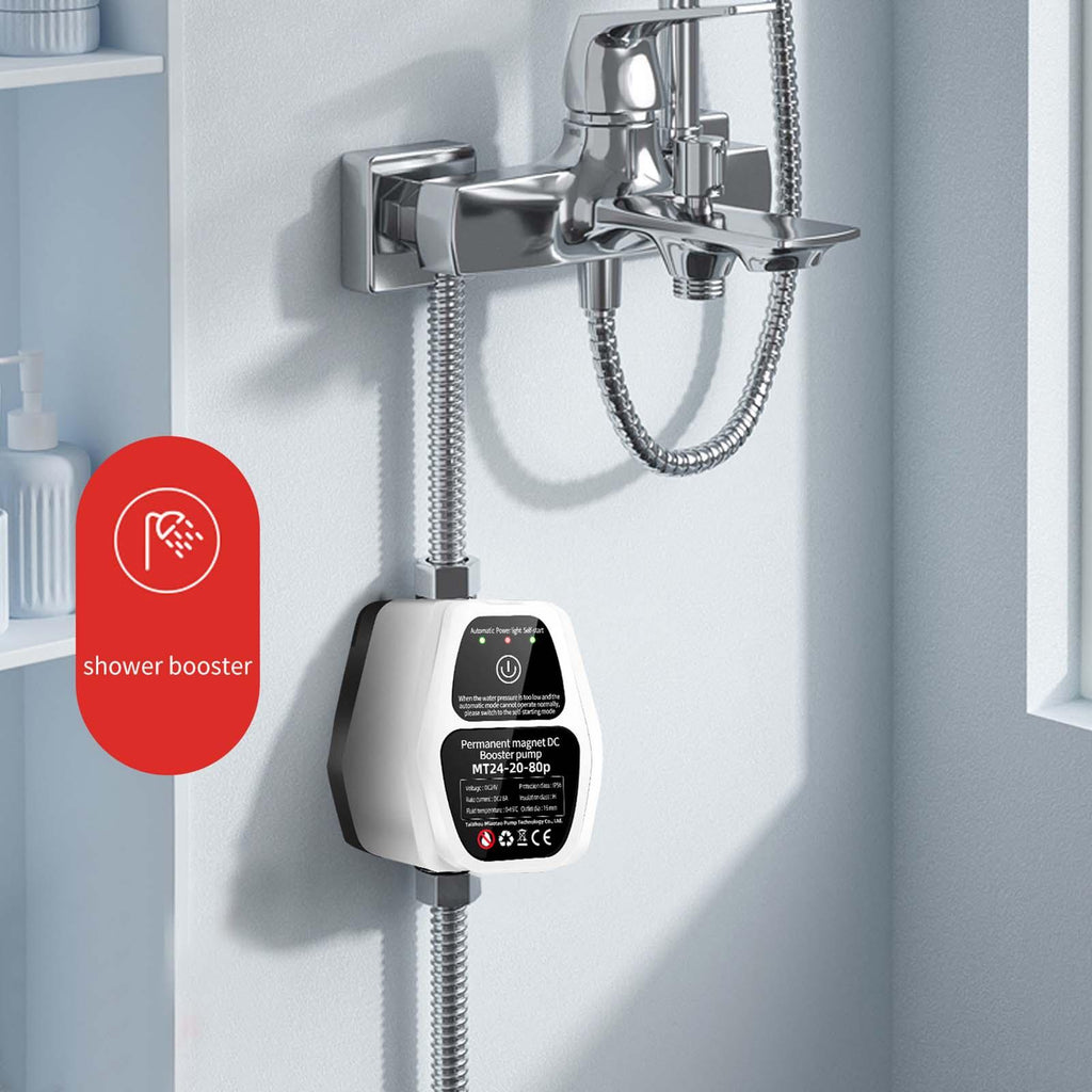 IP56 WATERPROOF: The silent automatic boost pump 24V DC voltage is to operate and will not cause harm to the human body. waterproof material, built in all copper motor , high efficiency and low noise.
