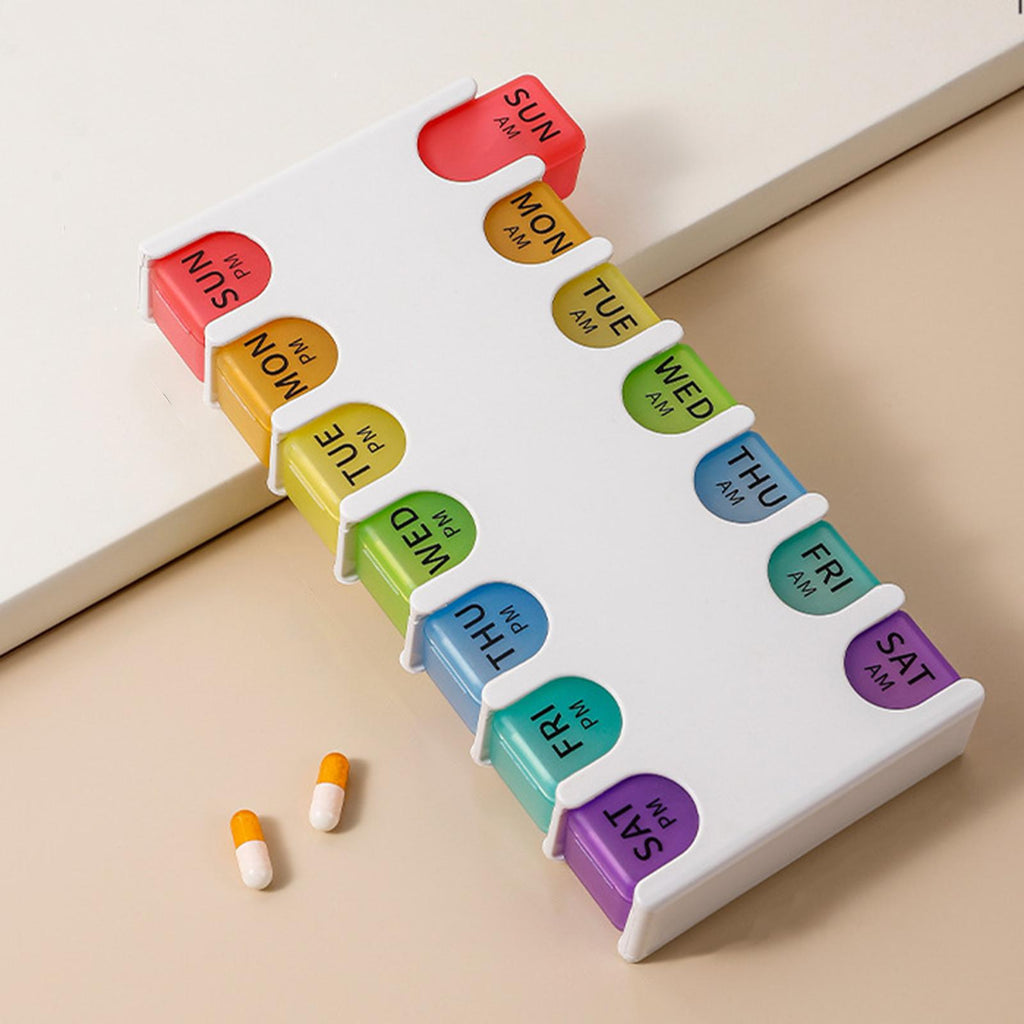 【Portable Design】: This pill organizer features a detachable design, allowing each of the 14 compartments to be independently removed and used. It's suitable for on the go convenience