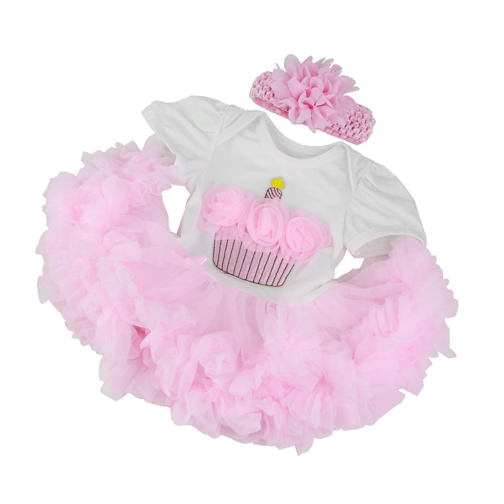 22inch-23inch Infant Newborn Baby Girl Doll Clothes Pink Dress with Underpants Flower Headband Suit