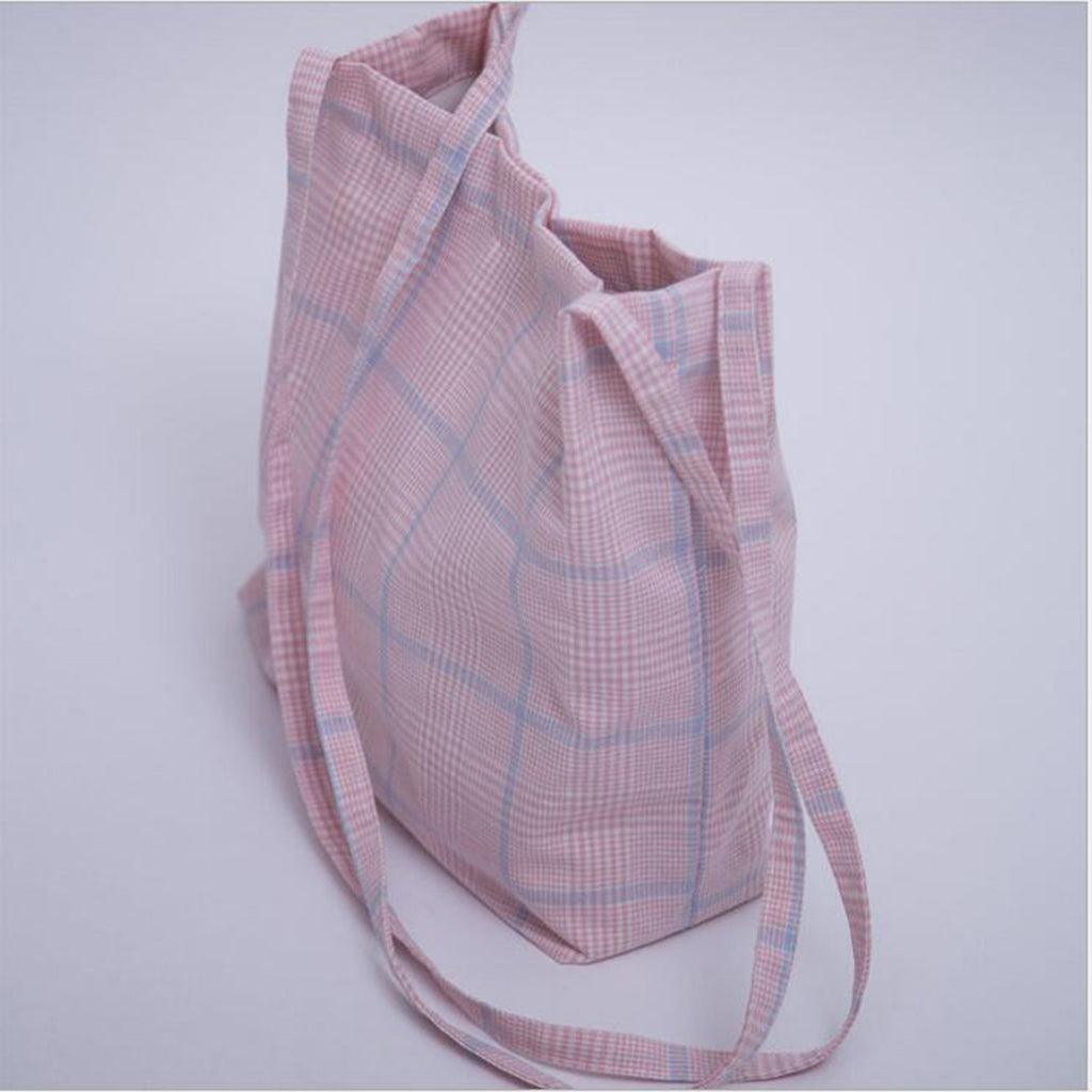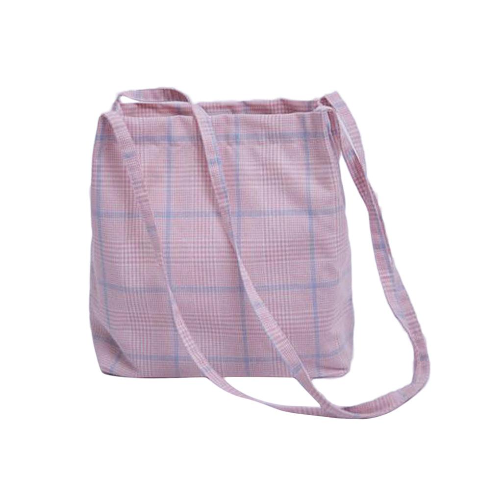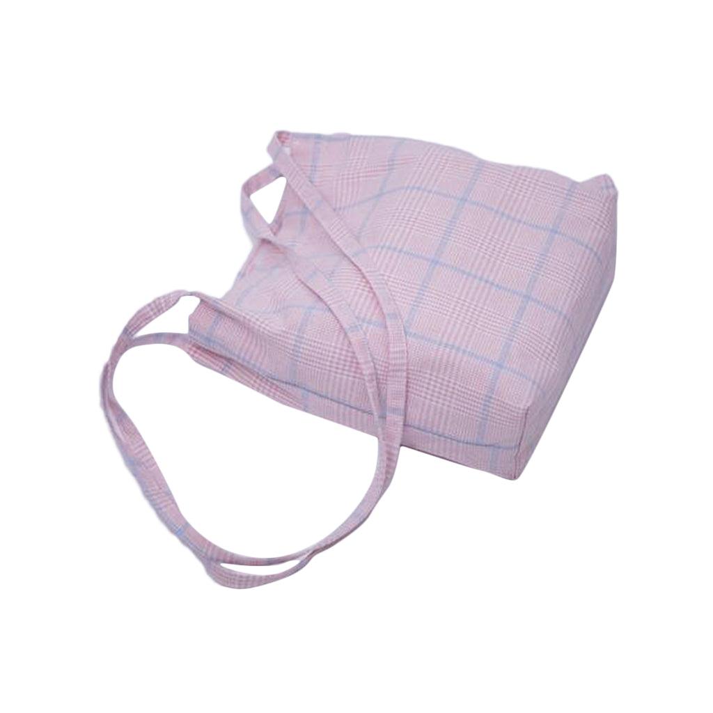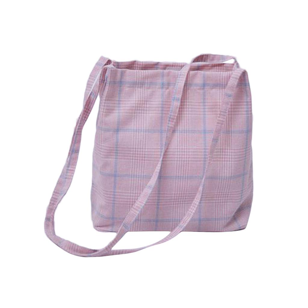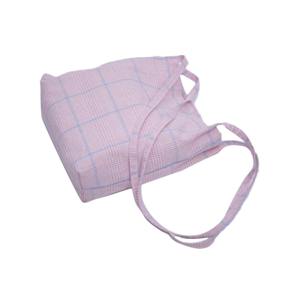 Maxbell Portable cotton linen Food Picnic One-shoulder Partysu Lunch Bag Pink Plaid