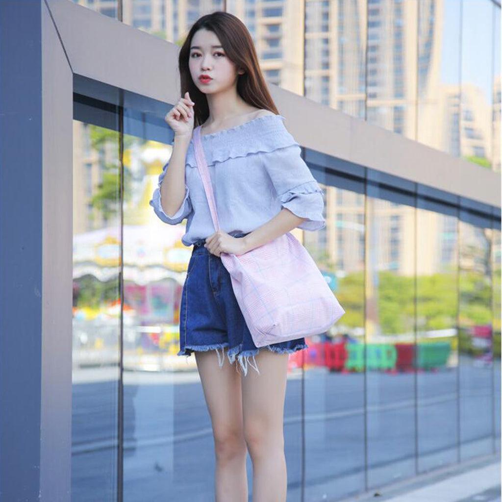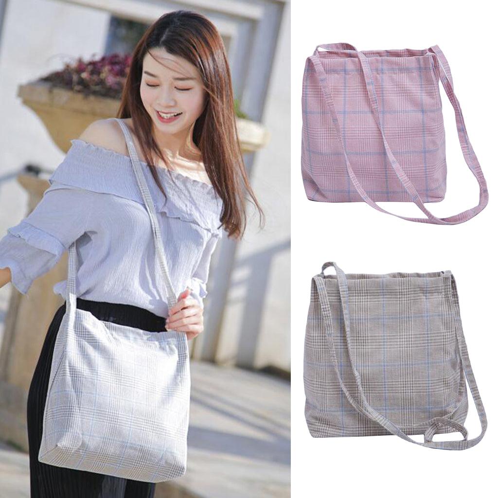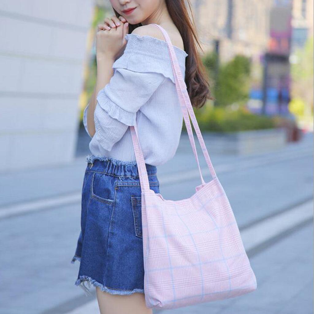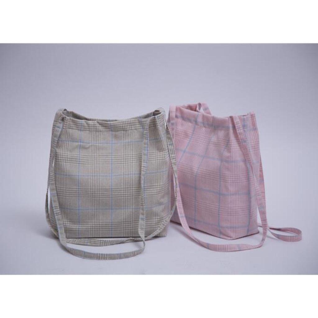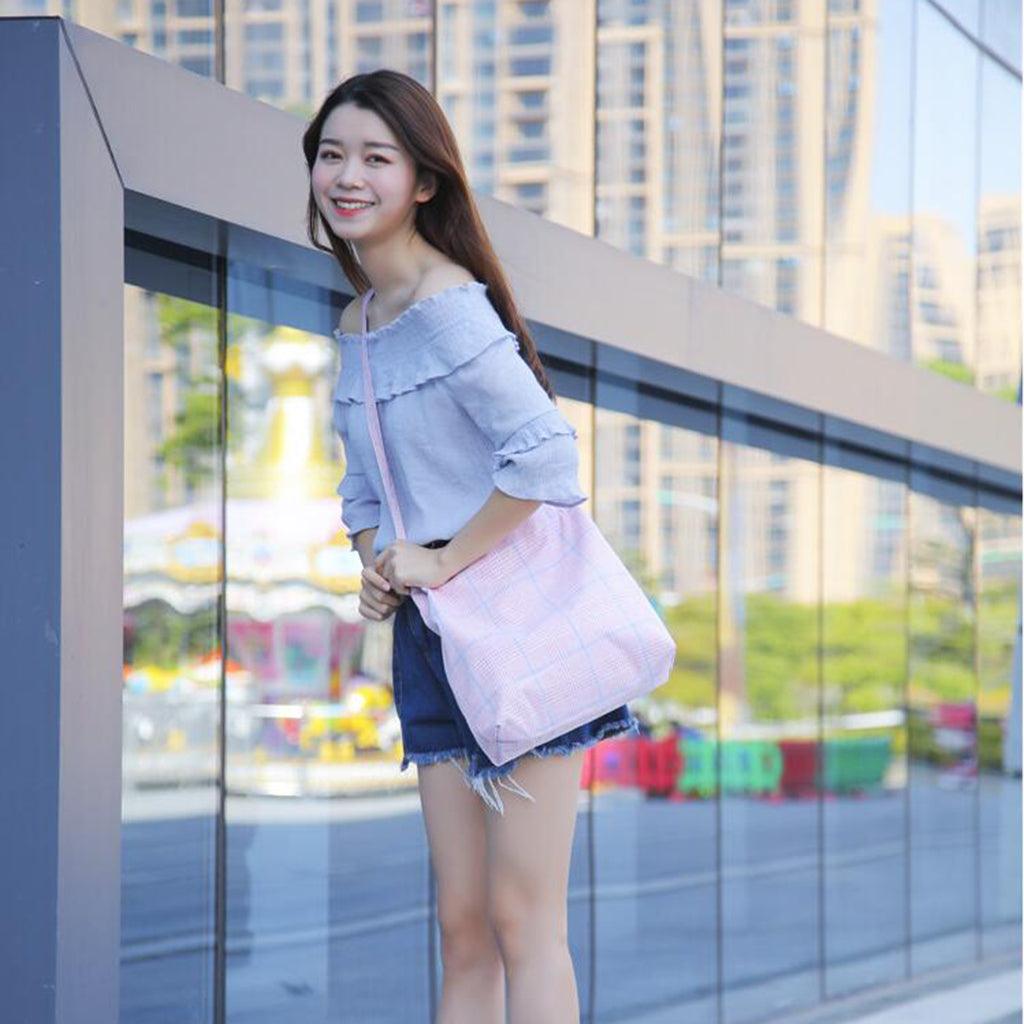 Maxbell Portable cotton linen Food Picnic One-shoulder Partysu Lunch Bag Pink Plaid