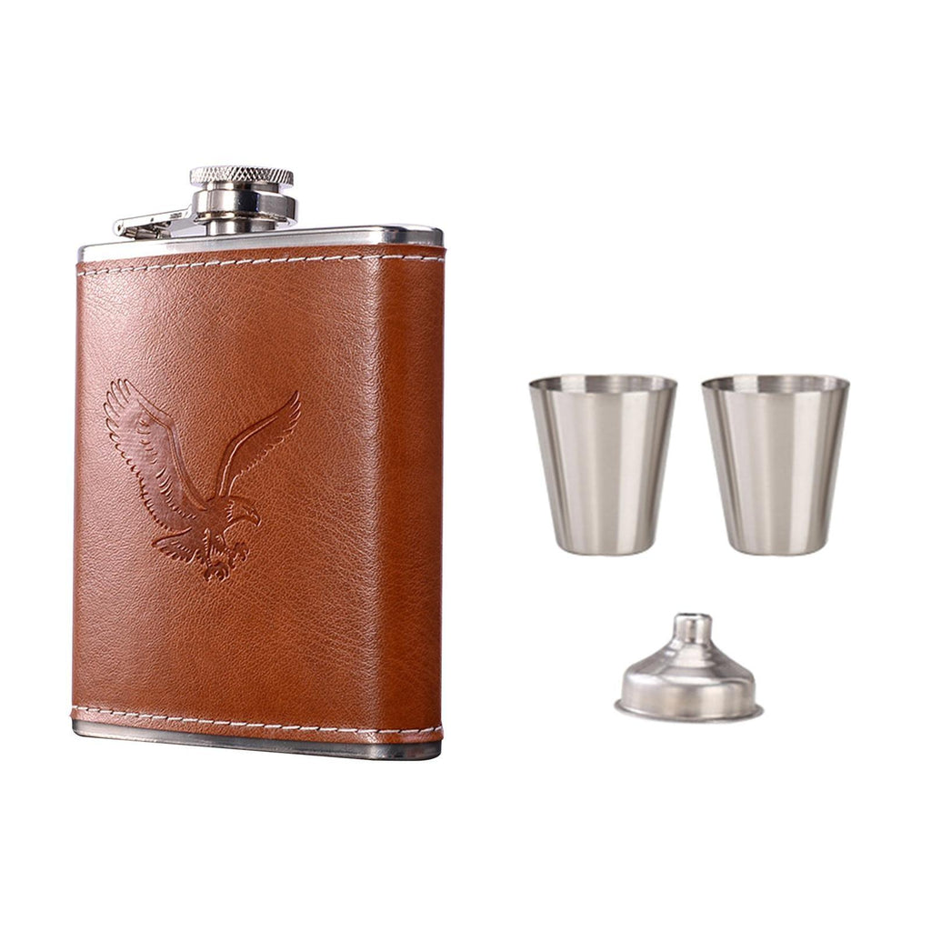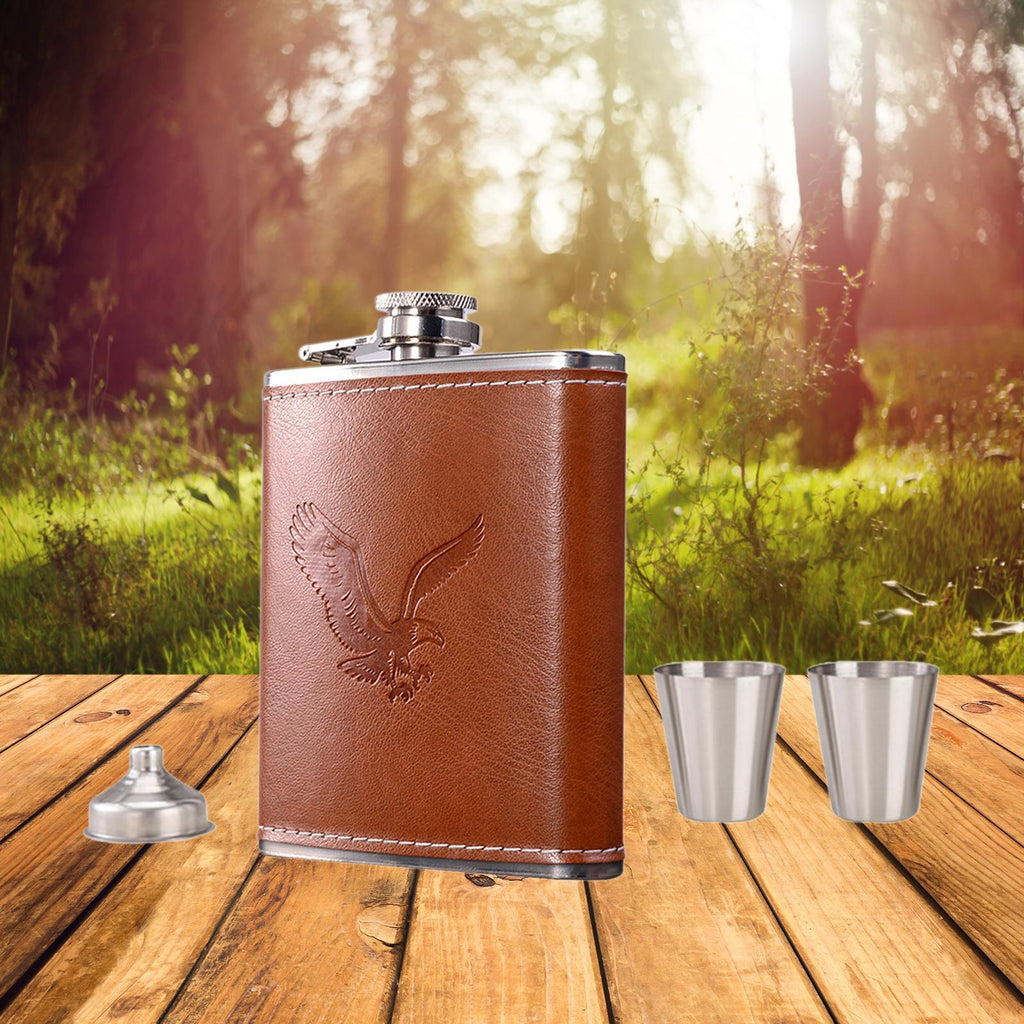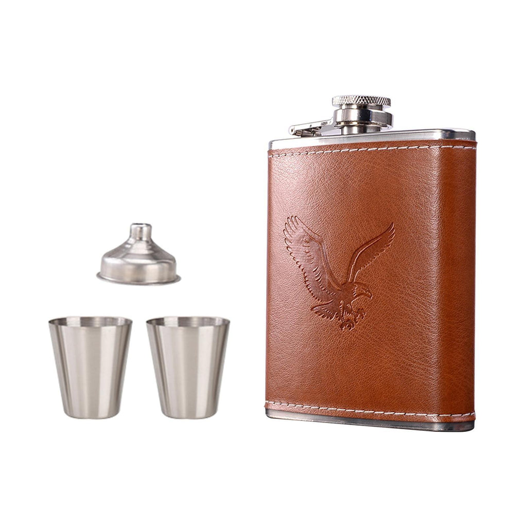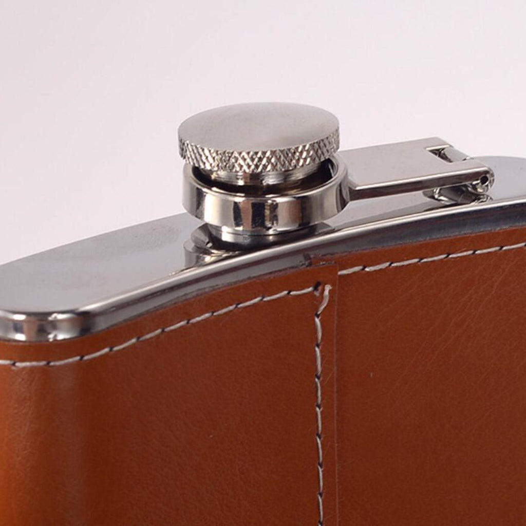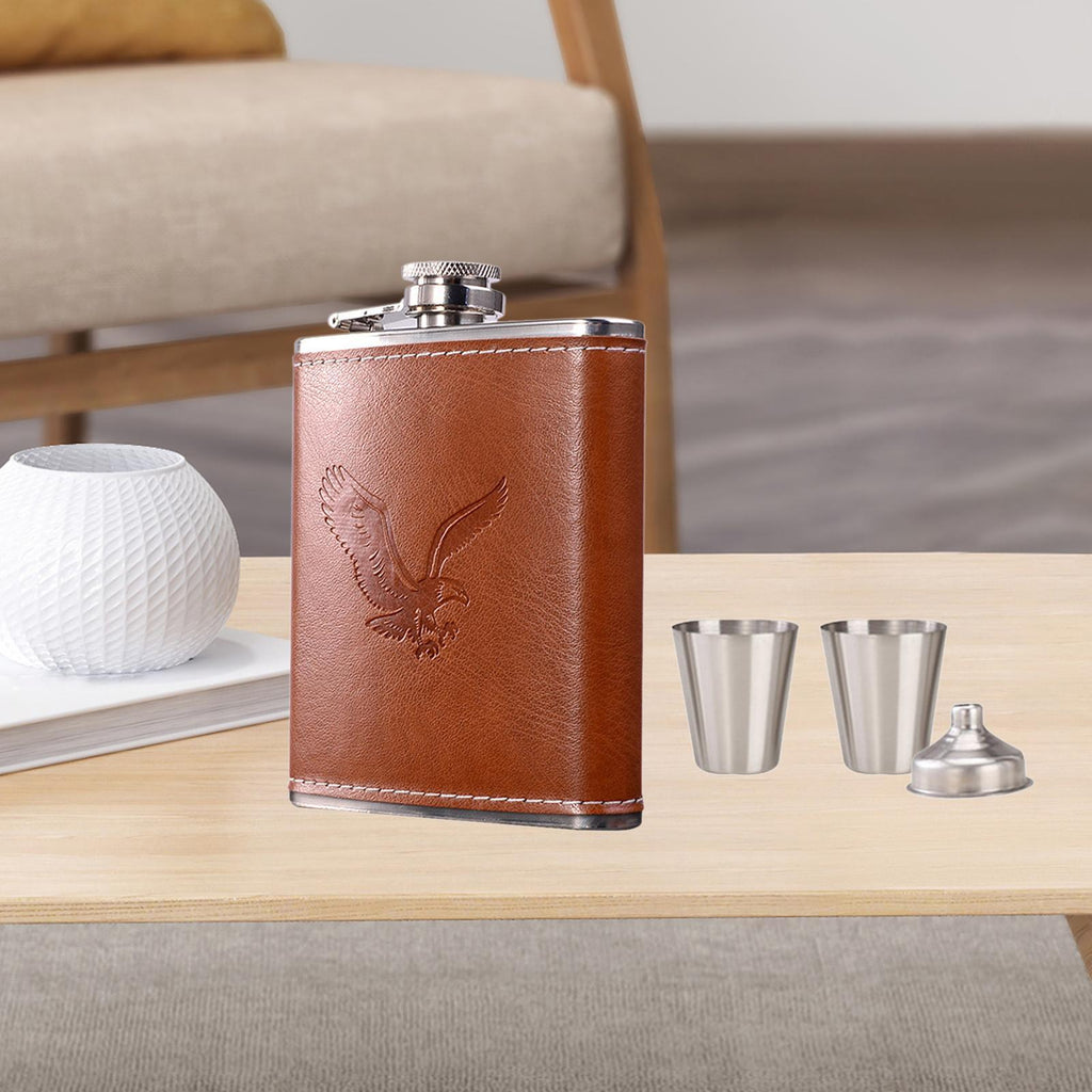 Maxbell Maxbell Portable Hip Flask Set Funnel Cups Liquor Stainless Steel Wine Bottle Brown