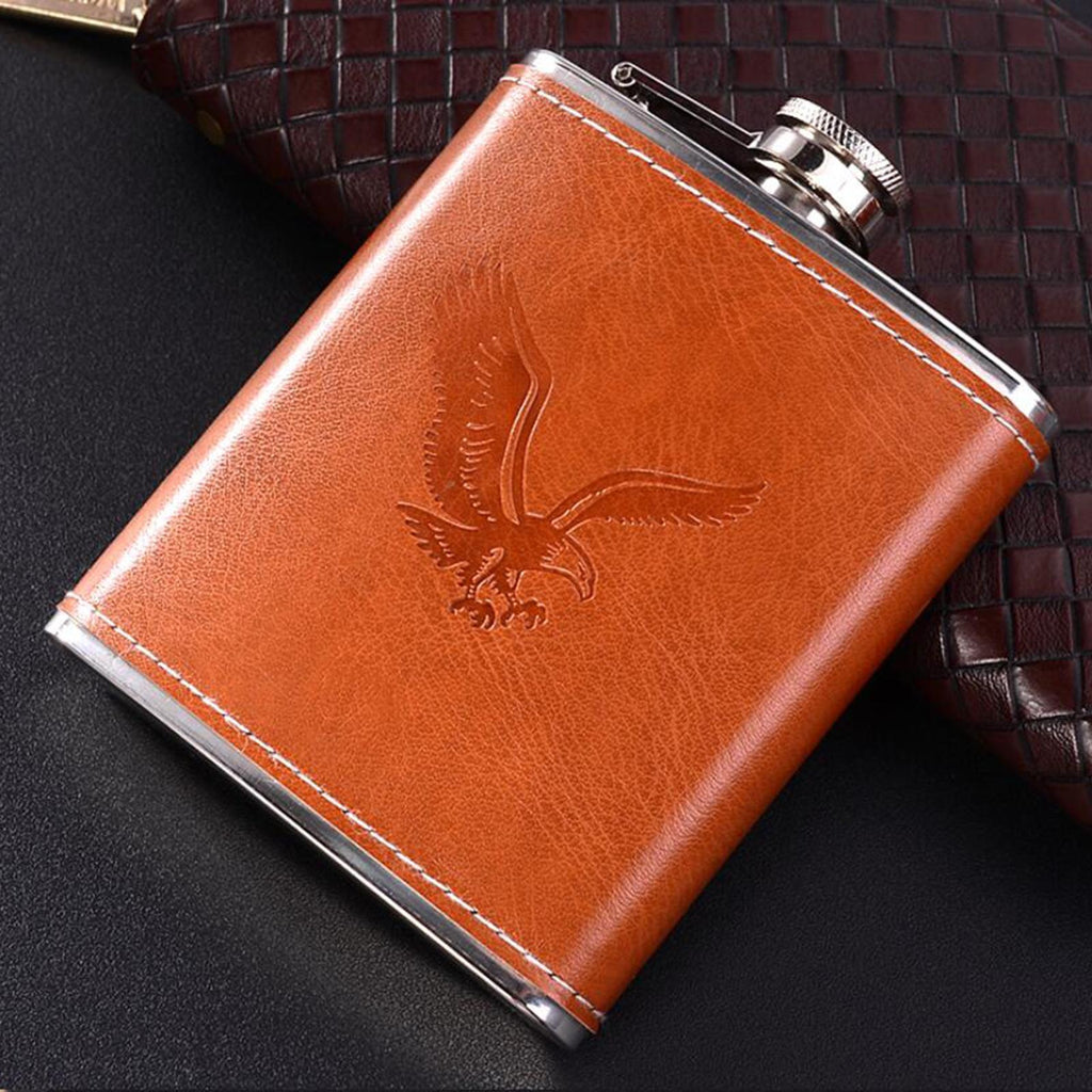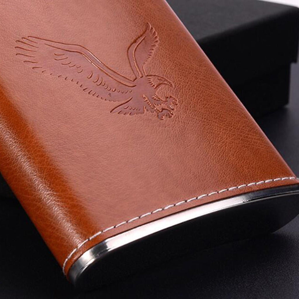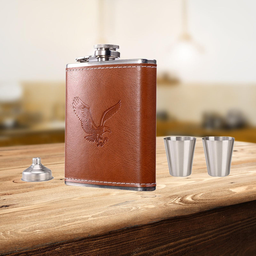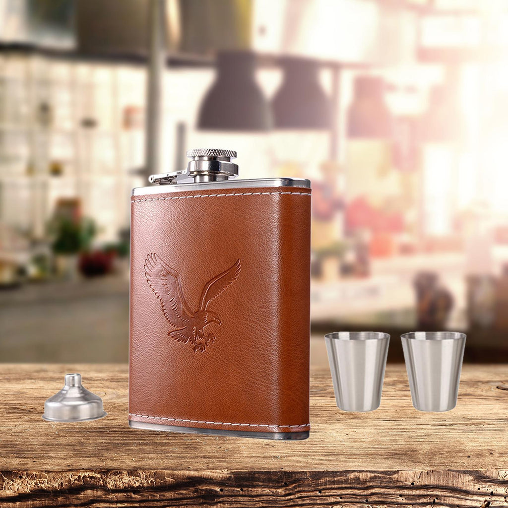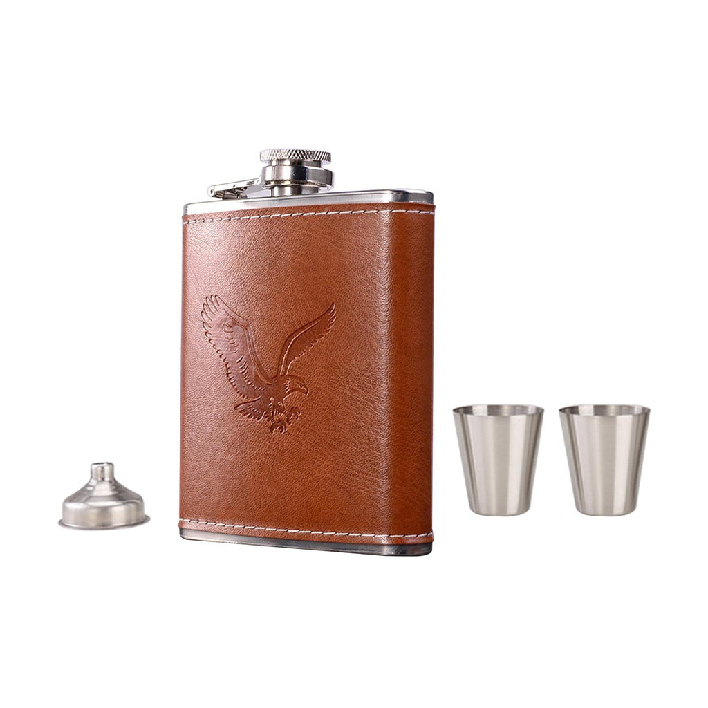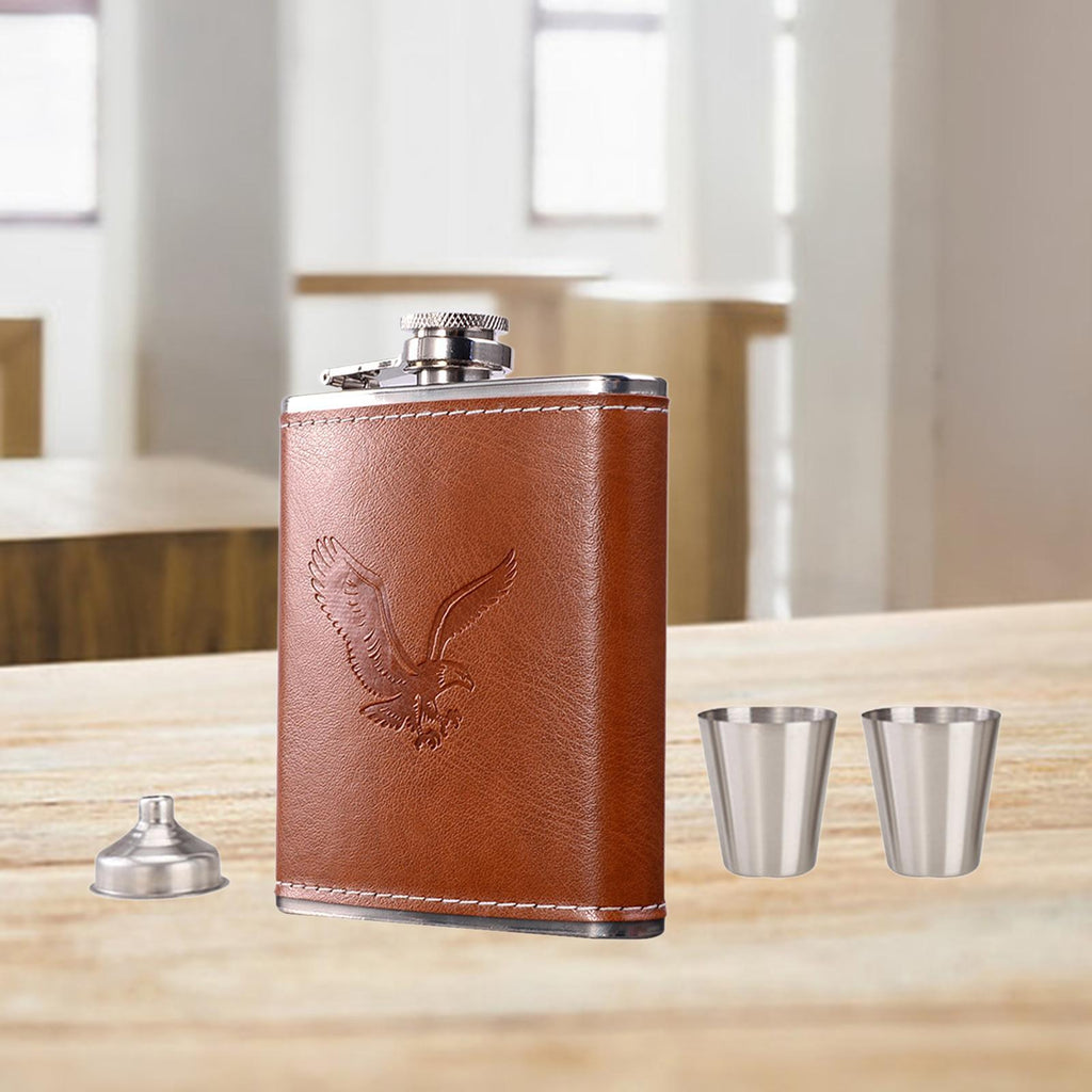 Maxbell Maxbell Portable Hip Flask Set Funnel Cups Liquor Stainless Steel Wine Bottle Brown