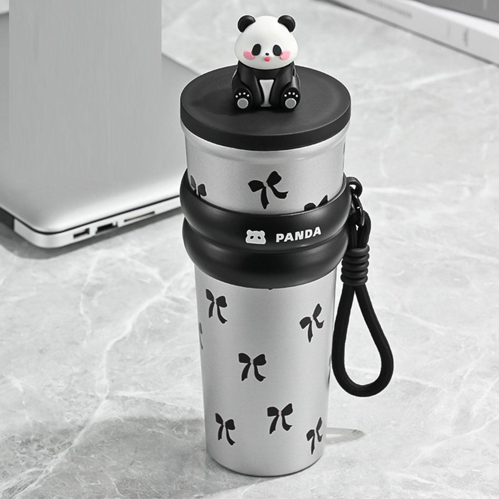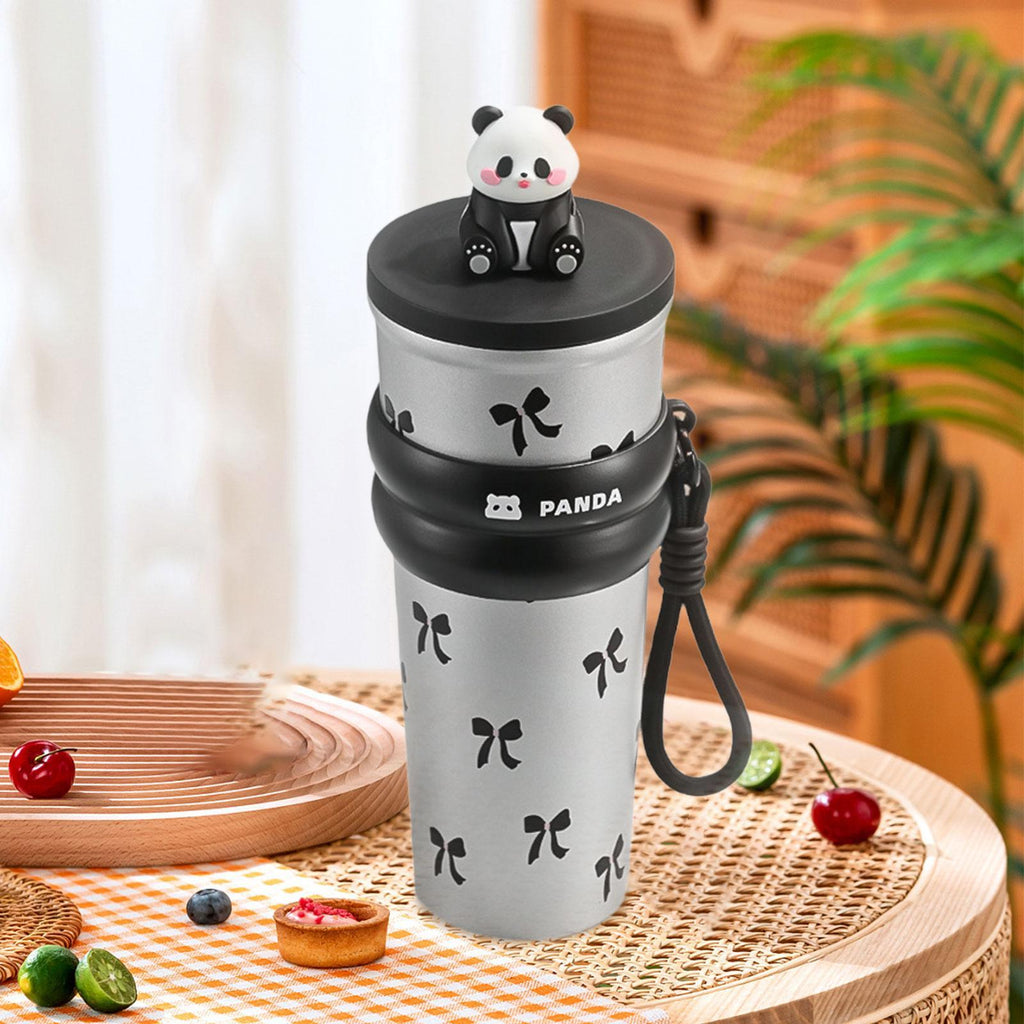 Maxbell Portable Insulated Tumbler Stainless Steel Water Bottle for Outdoor Home Car Silvery with Panda