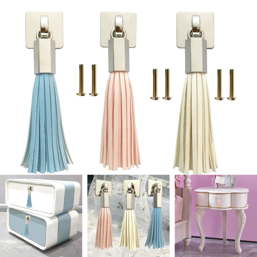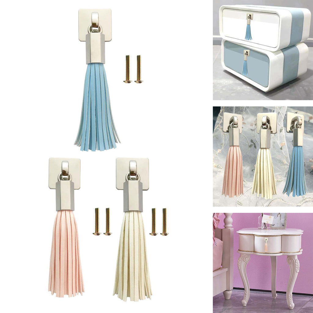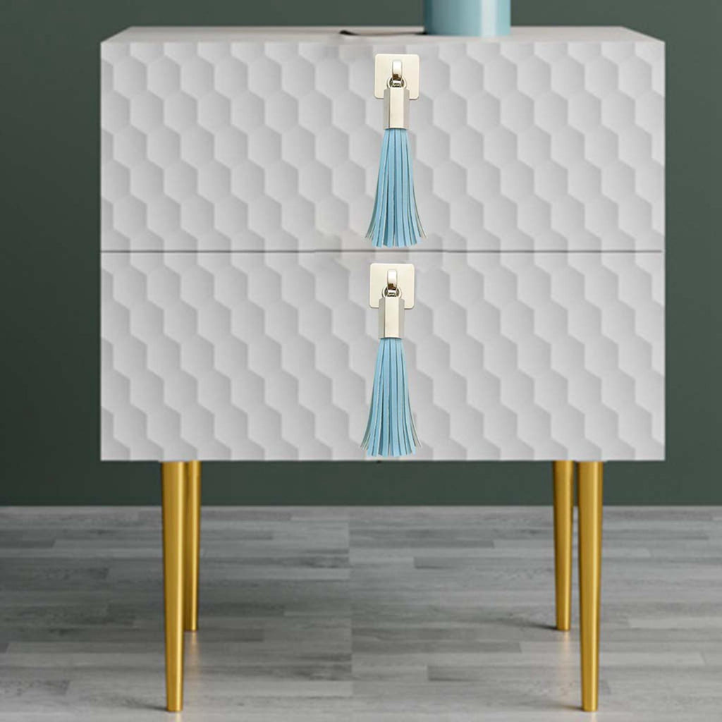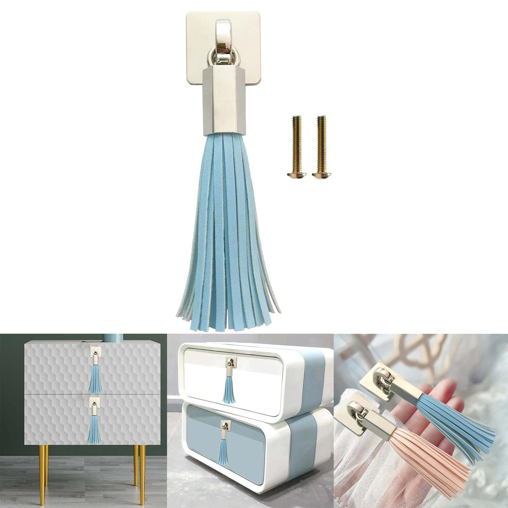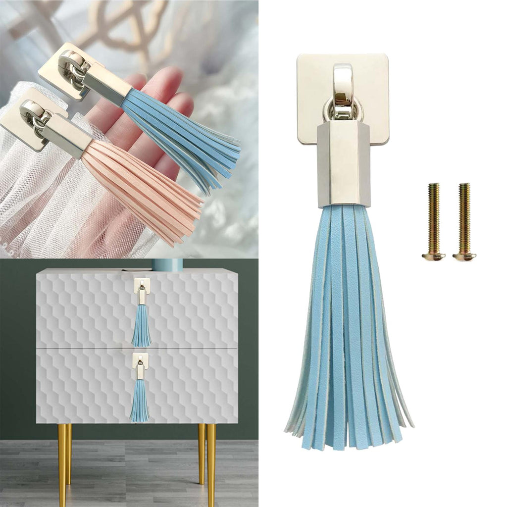 Maxbell PU Leather Tassel Drawer Pulls Zinc Alloy for Cupboard Desk Cabinet Blue