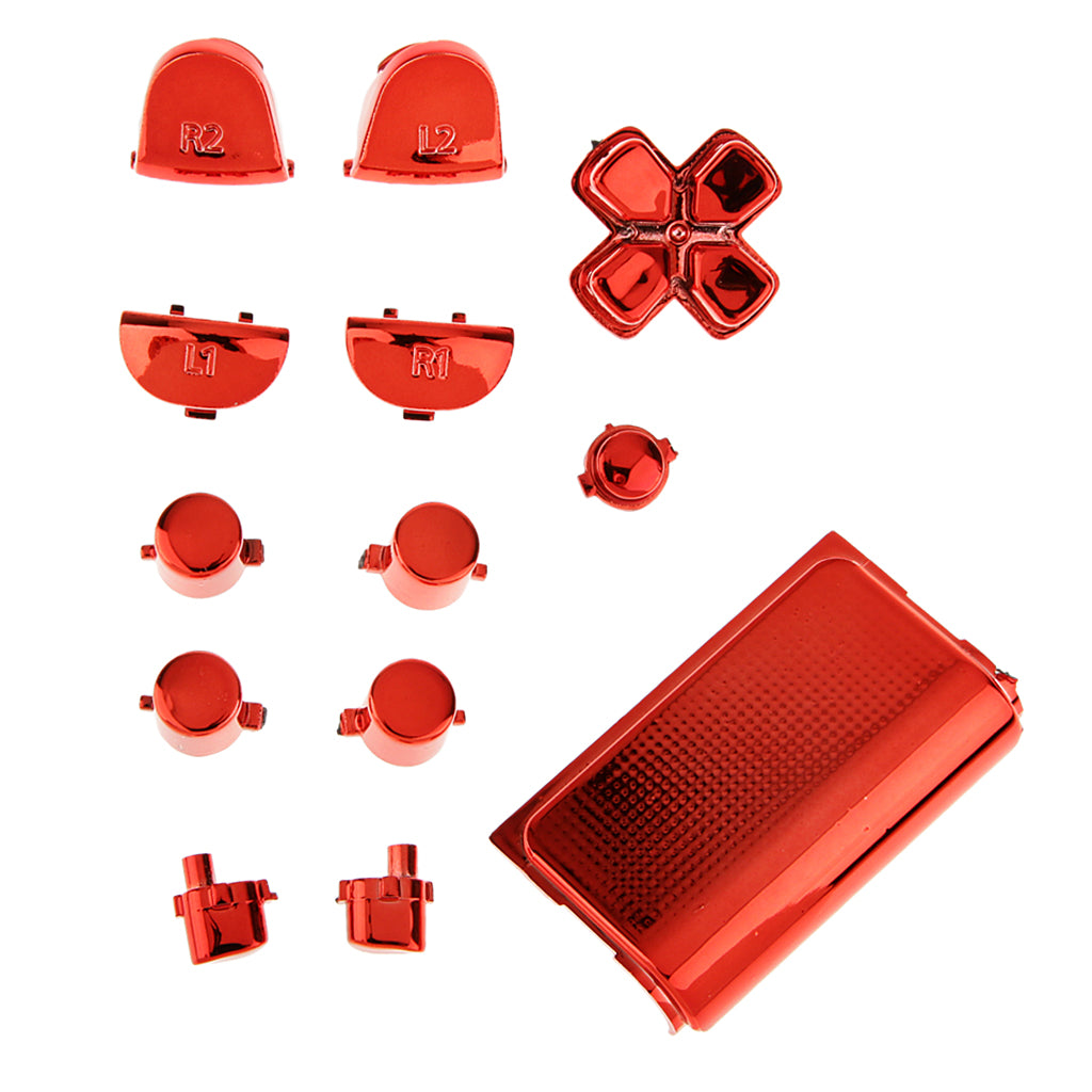 Maxbell Red-Chrome Plating Buttons Housing and Touchpad for PS4 Controller Shell Protection Easy Install