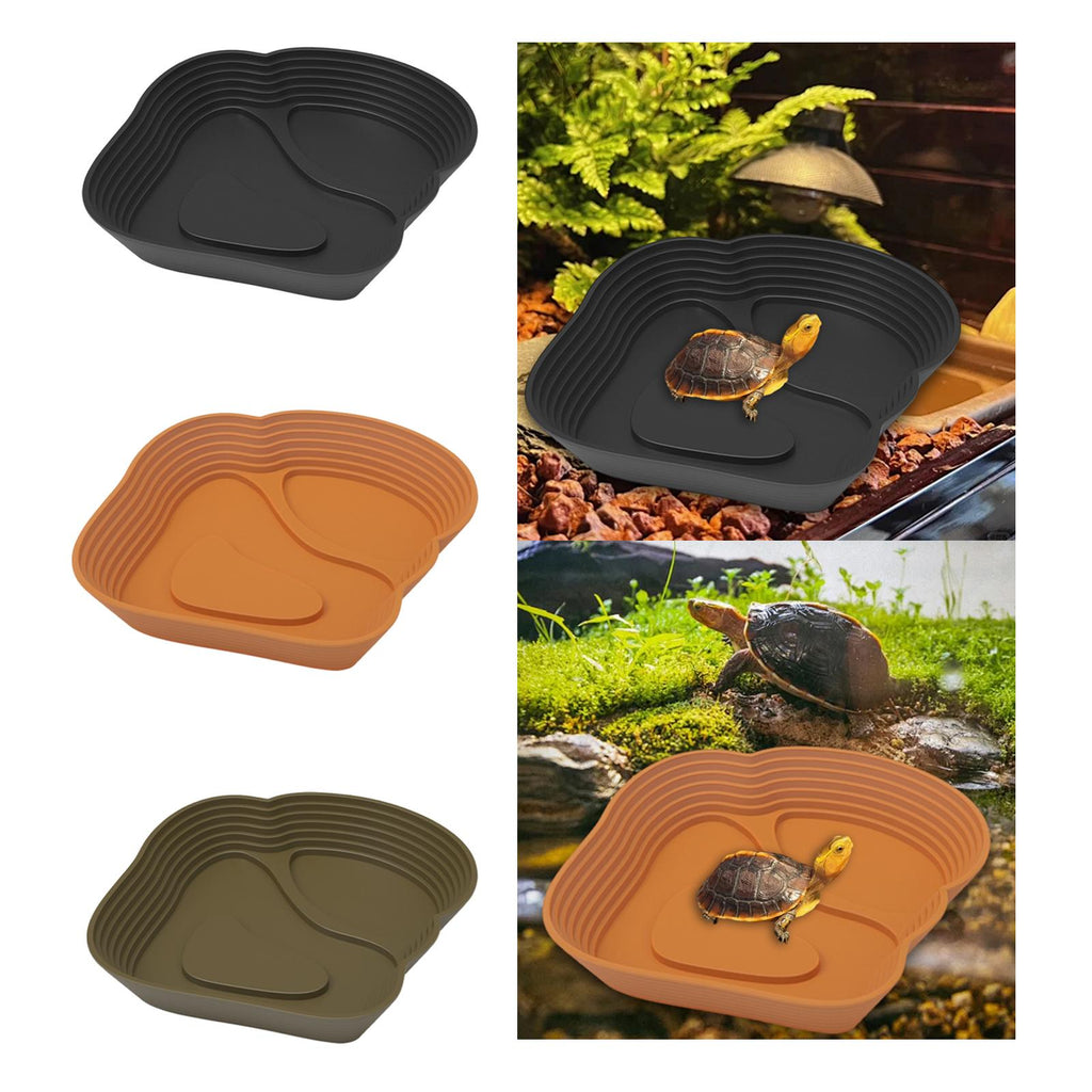【Spacious Layout】: Tortoise Water Bath Bowl features separate bathing and sunbathing areas, allowing your tortoise to easily switch between activities for more comfortable experience