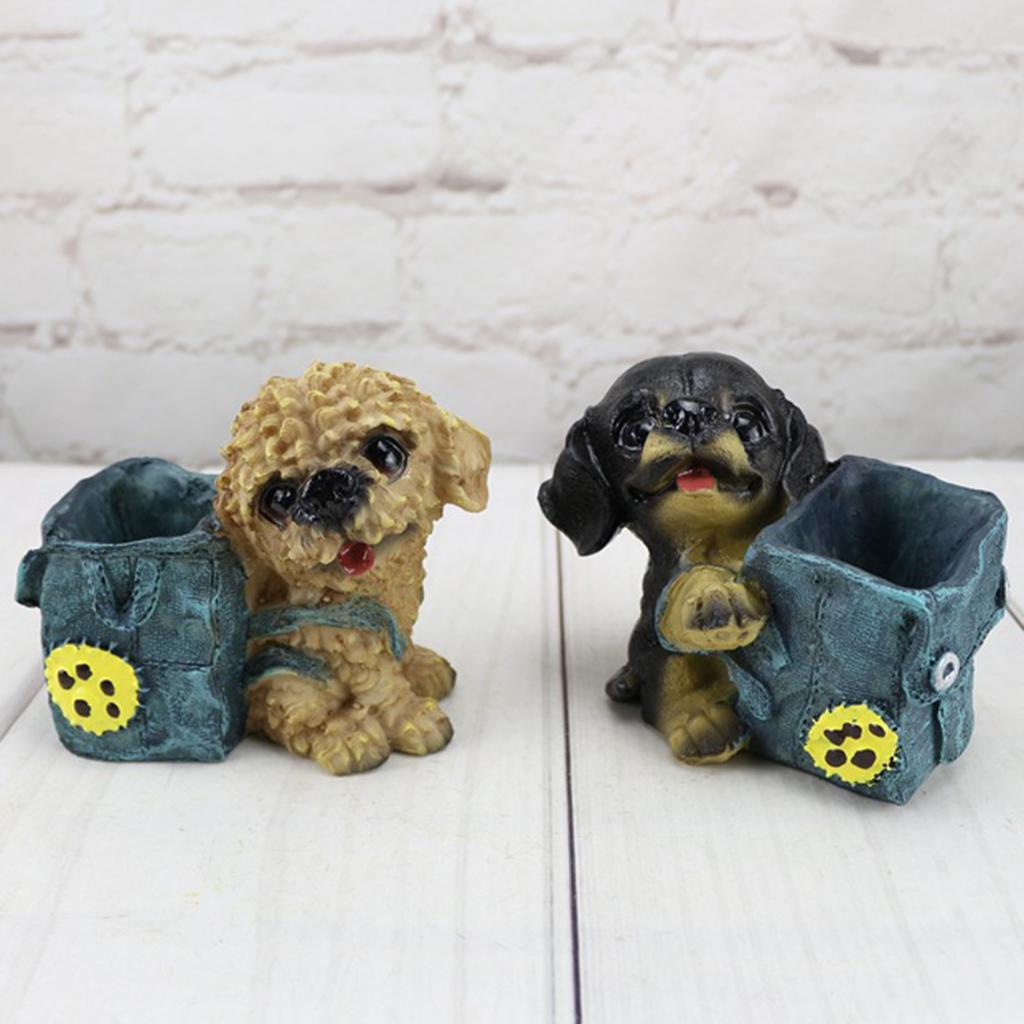 Maxbell Resin Dog Pen Pot Pencil Brush Holder Desk Organizer Home Desk Decoration B