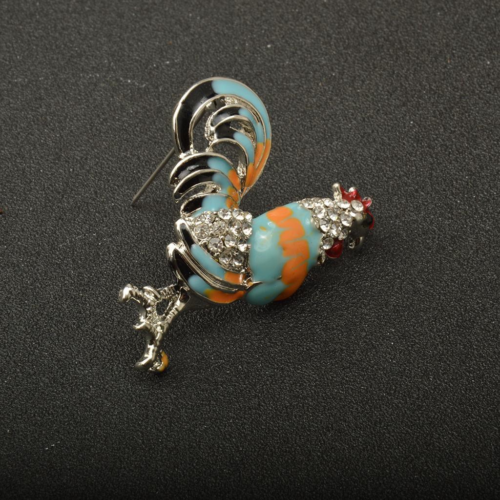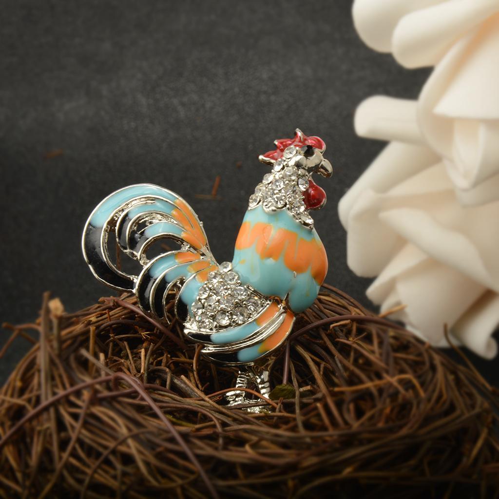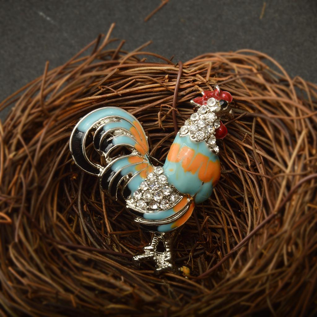 Maxbell Maxbell Retro Crystal Rhinestone Cock Rooster Animal Brooch Pins Christmas Blue
