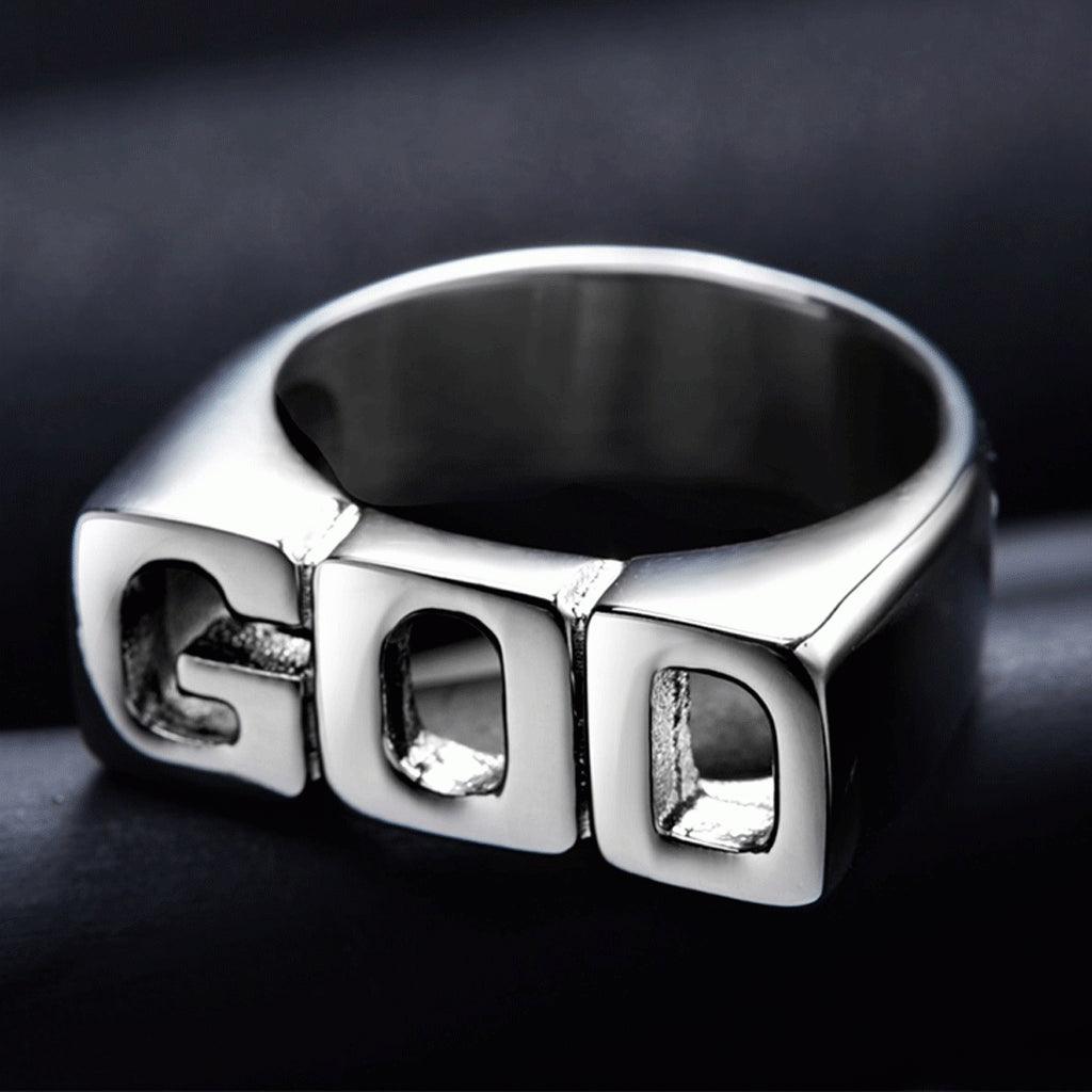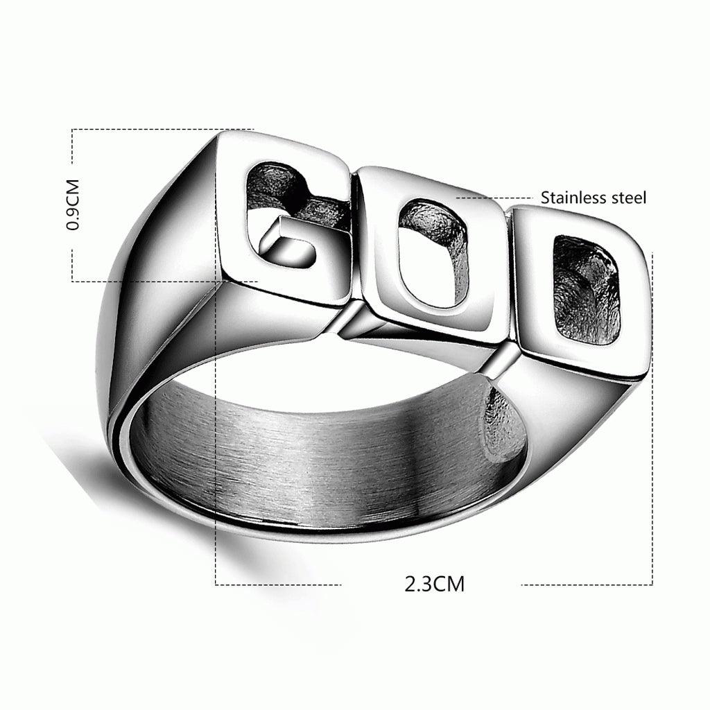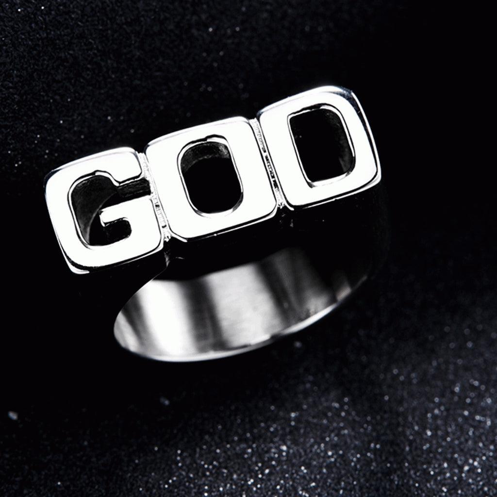 - Creative punk style GOD pattern shiny side rings