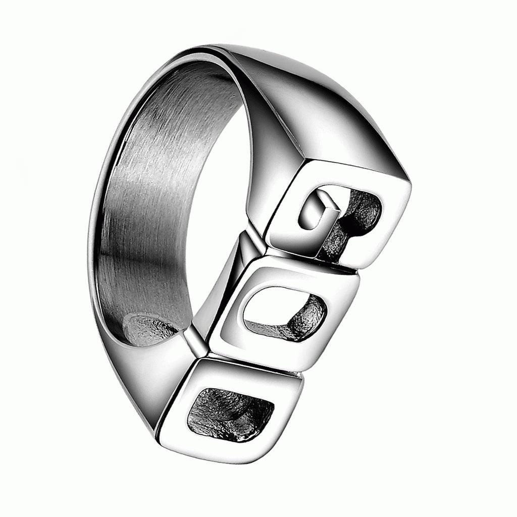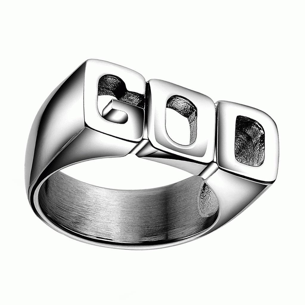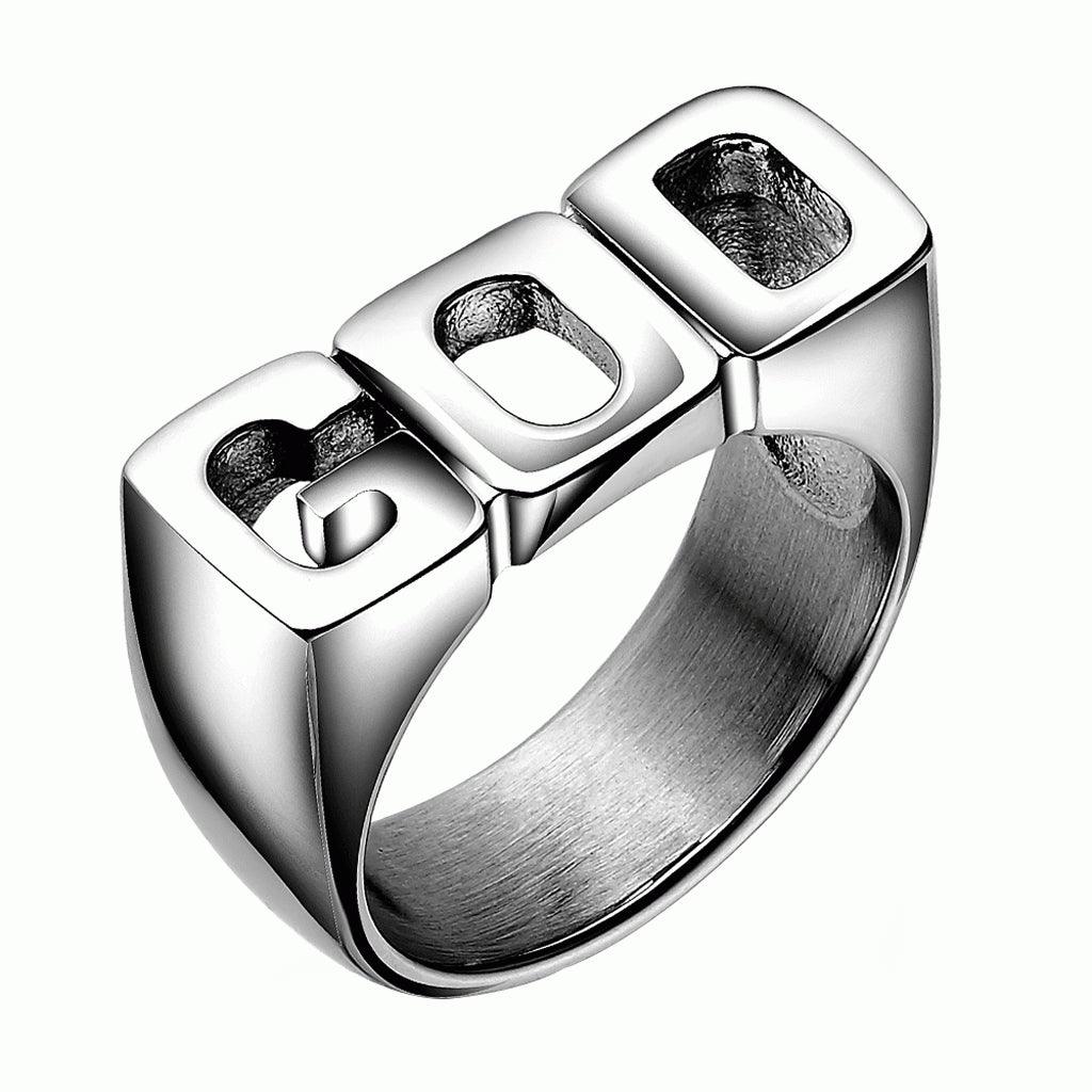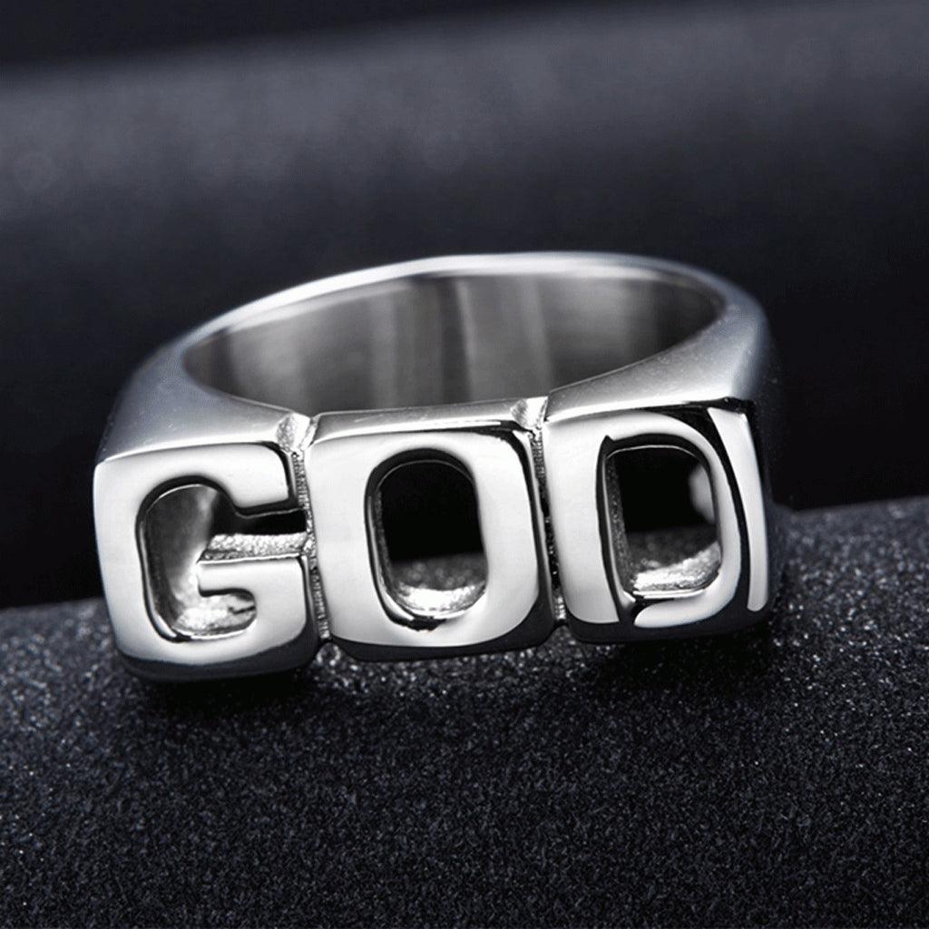 - Creative punk style GOD pattern shiny side rings