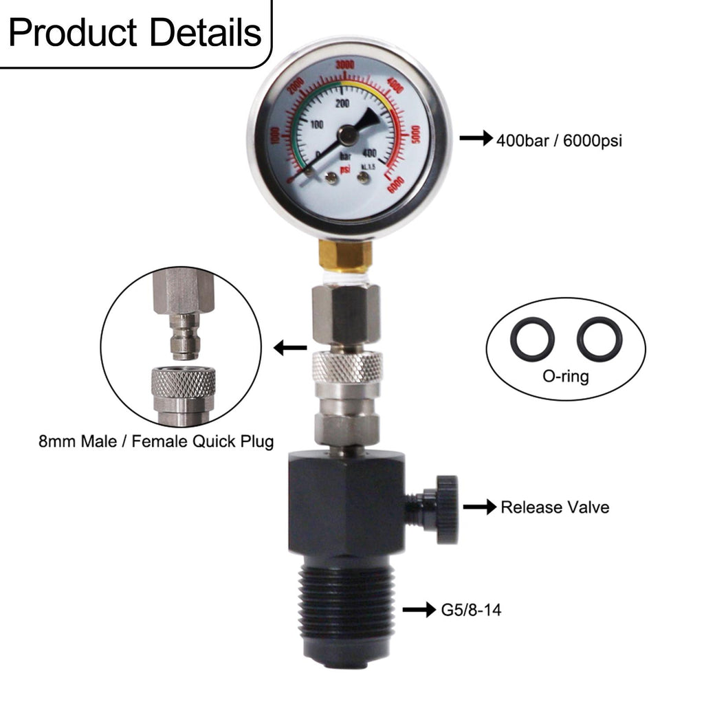 【Luminous Gauge】: Equipped with a 400Bar/6000PSI luminous gauge that allows for clear reading even in low light underwater conditions