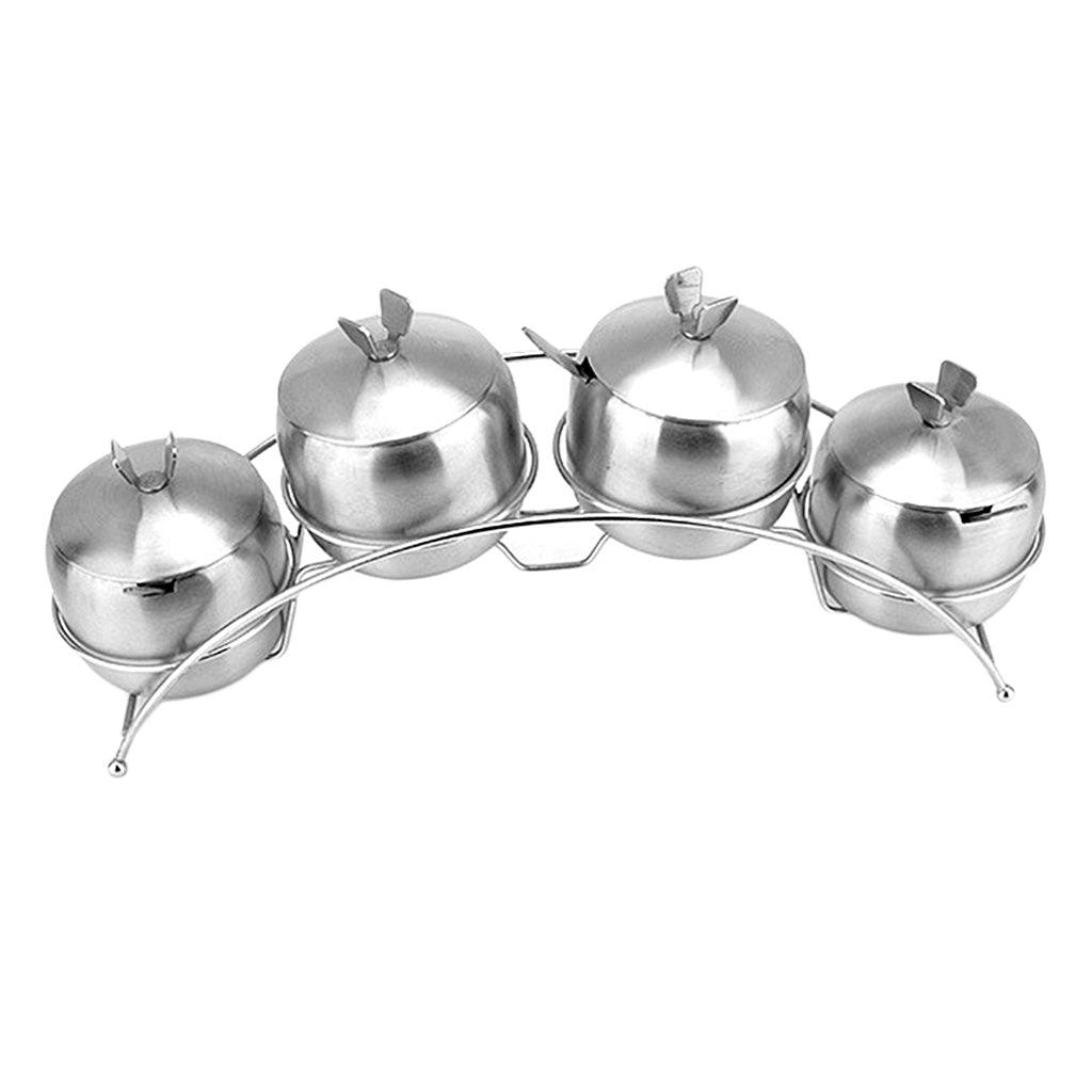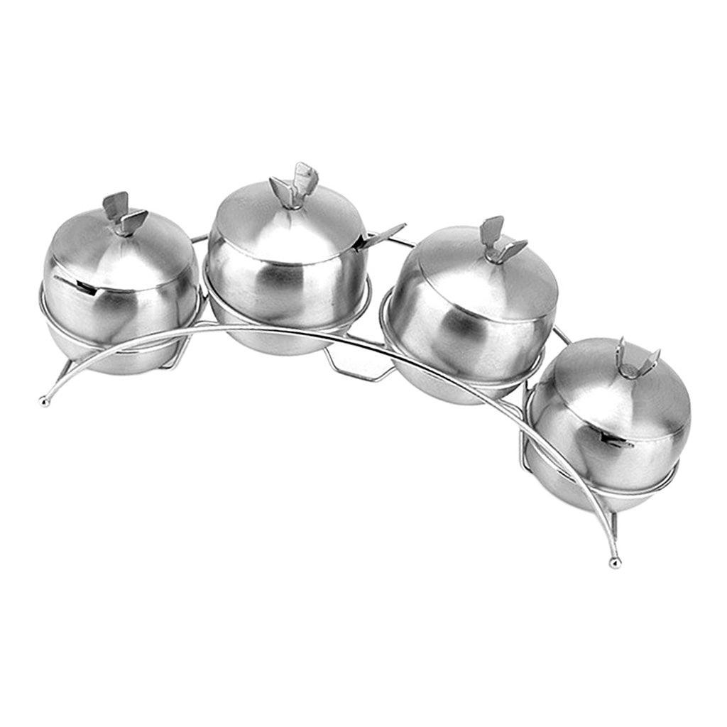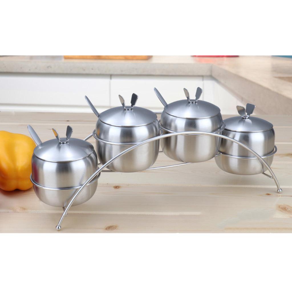 Maxbell Seasoning Jars with Spoons Stainless Steel Spice Jars Condiment Pot 4pcs