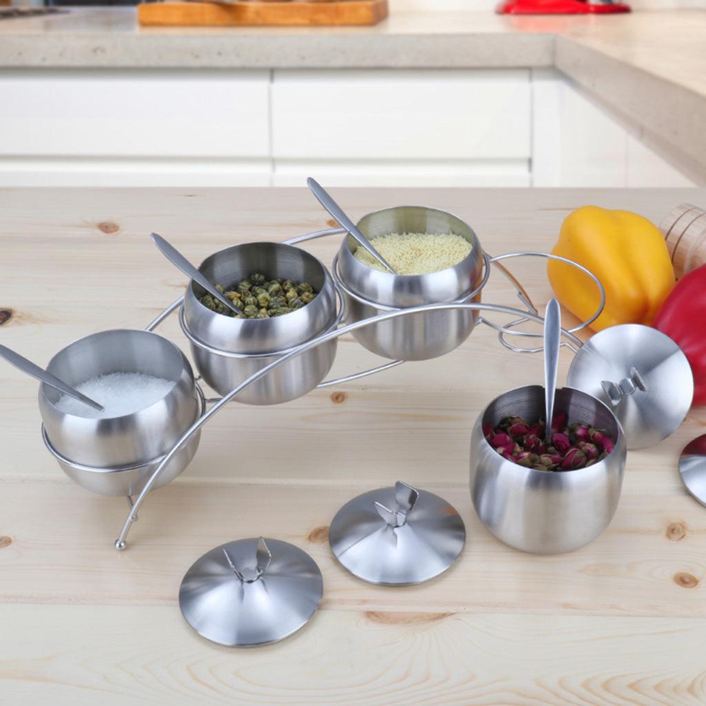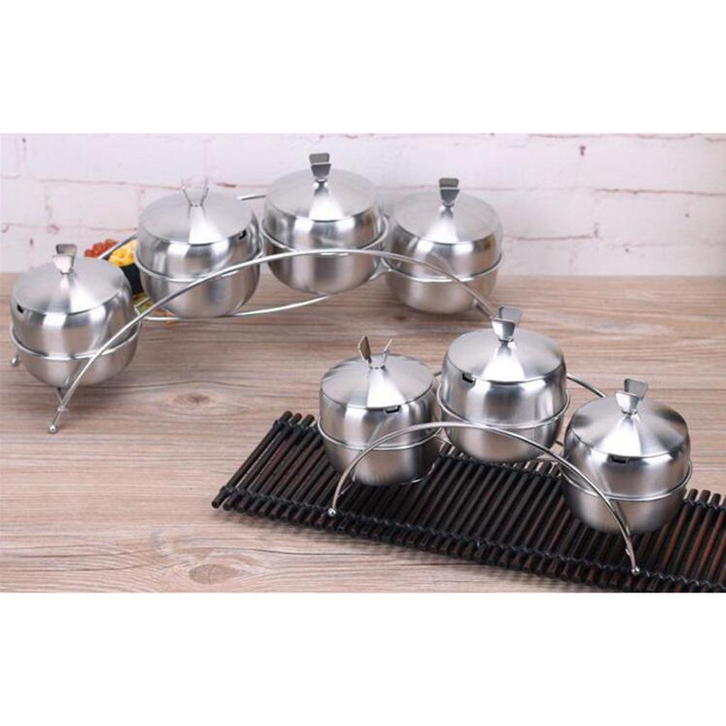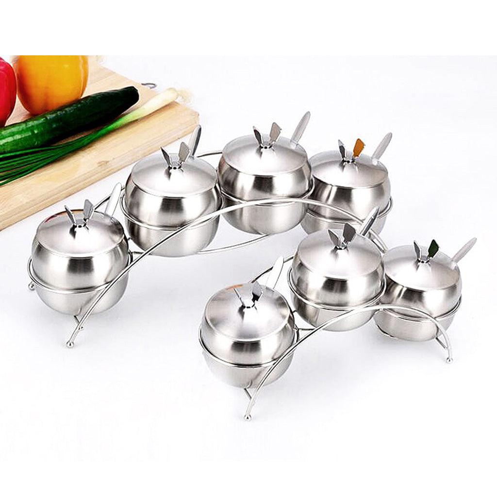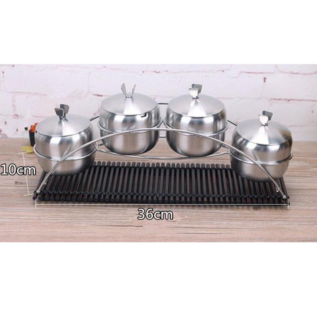 Maxbell Seasoning Jars with Spoons Stainless Steel Spice Jars Condiment Pot 4pcs