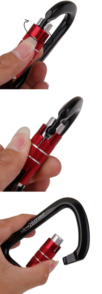 Maxbell Self Locking Mountaineering Climbing Carabiner 26KN - Black Red