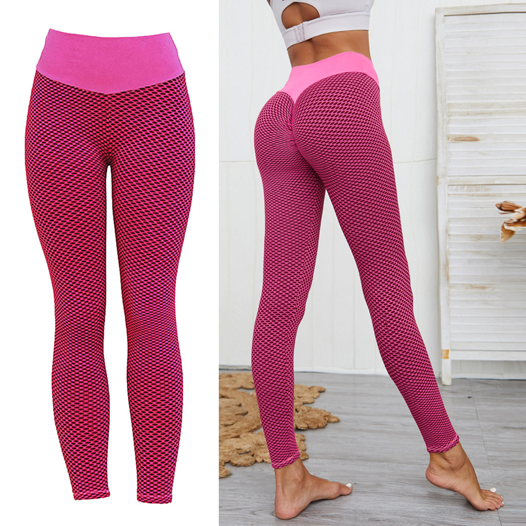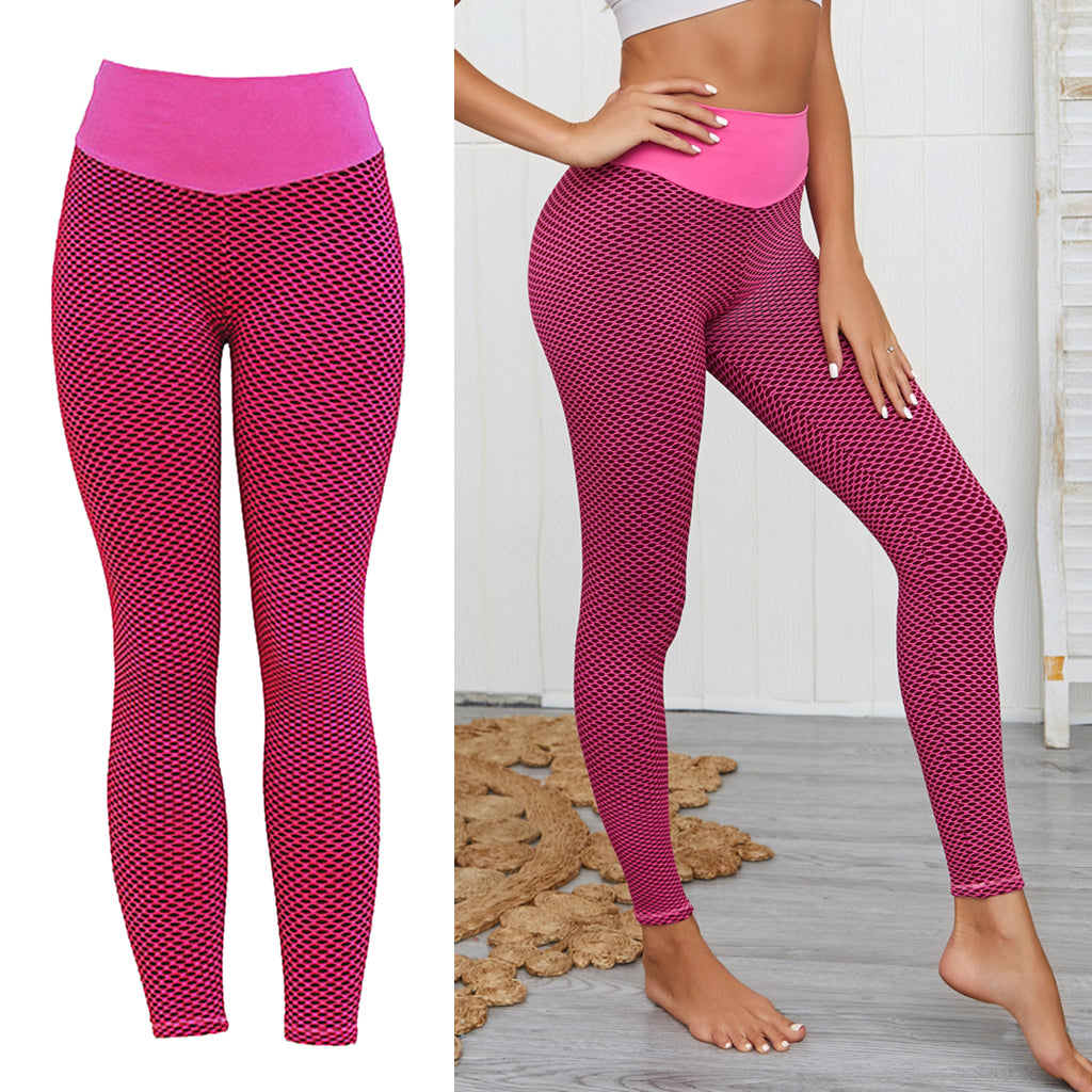 Maxbell Sexy Butt Lifting Leggings Honeycomb High Waisted Workout Tights L Pink