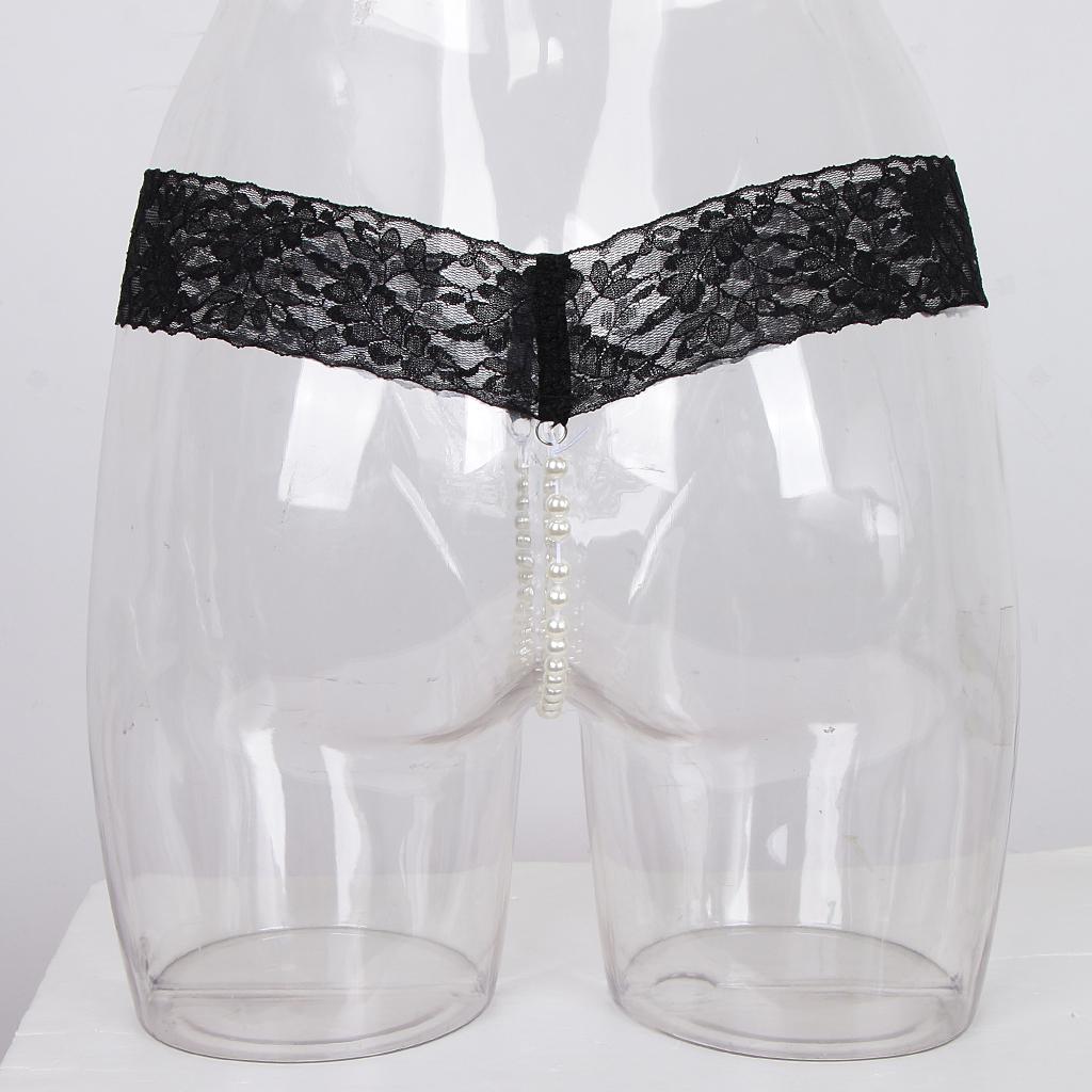 Sexy crotchless lace briefs for women, pearls beads string thong design