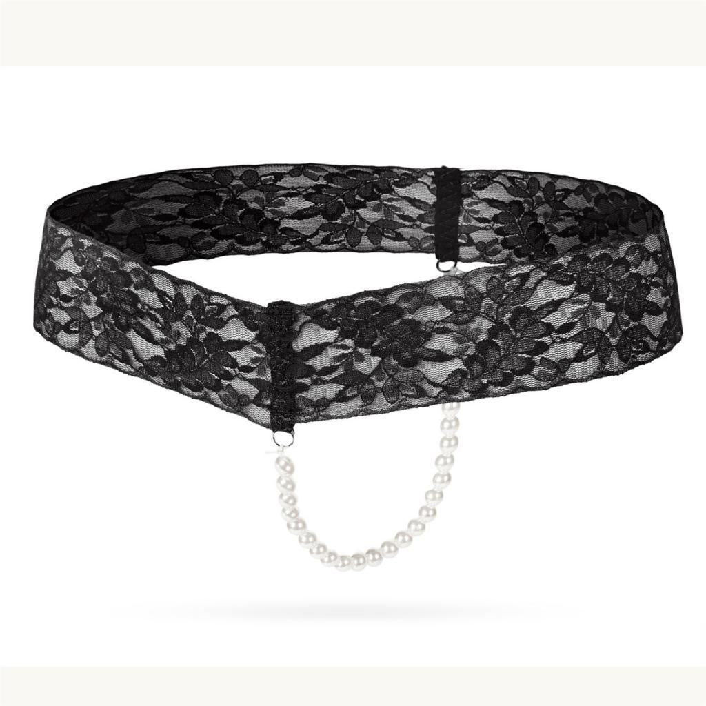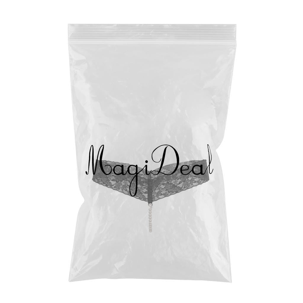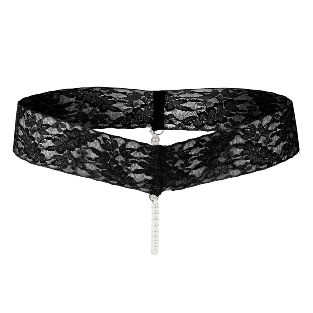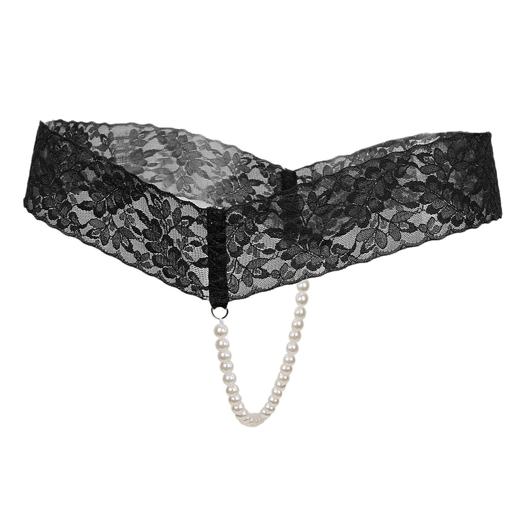 Maxbell Sexy Women Crotchless Panties Sheer Lace Thong Underwear Pearls Strings Black