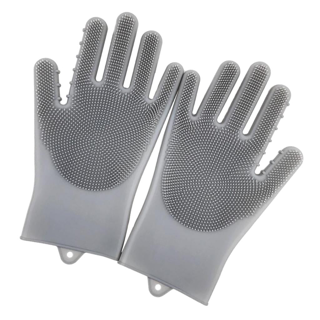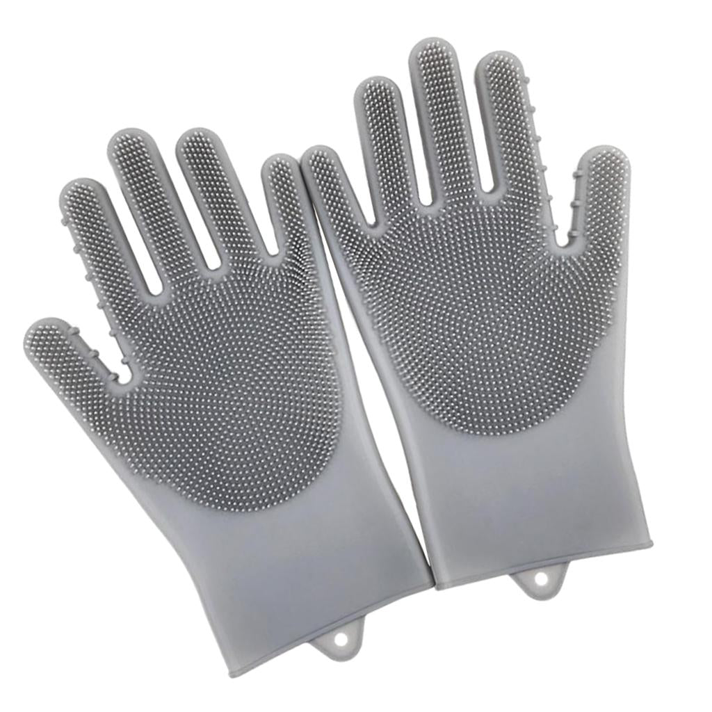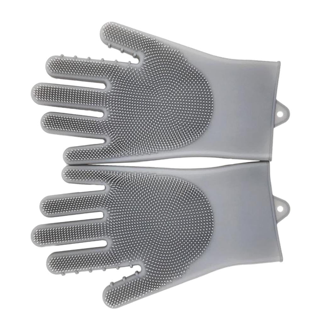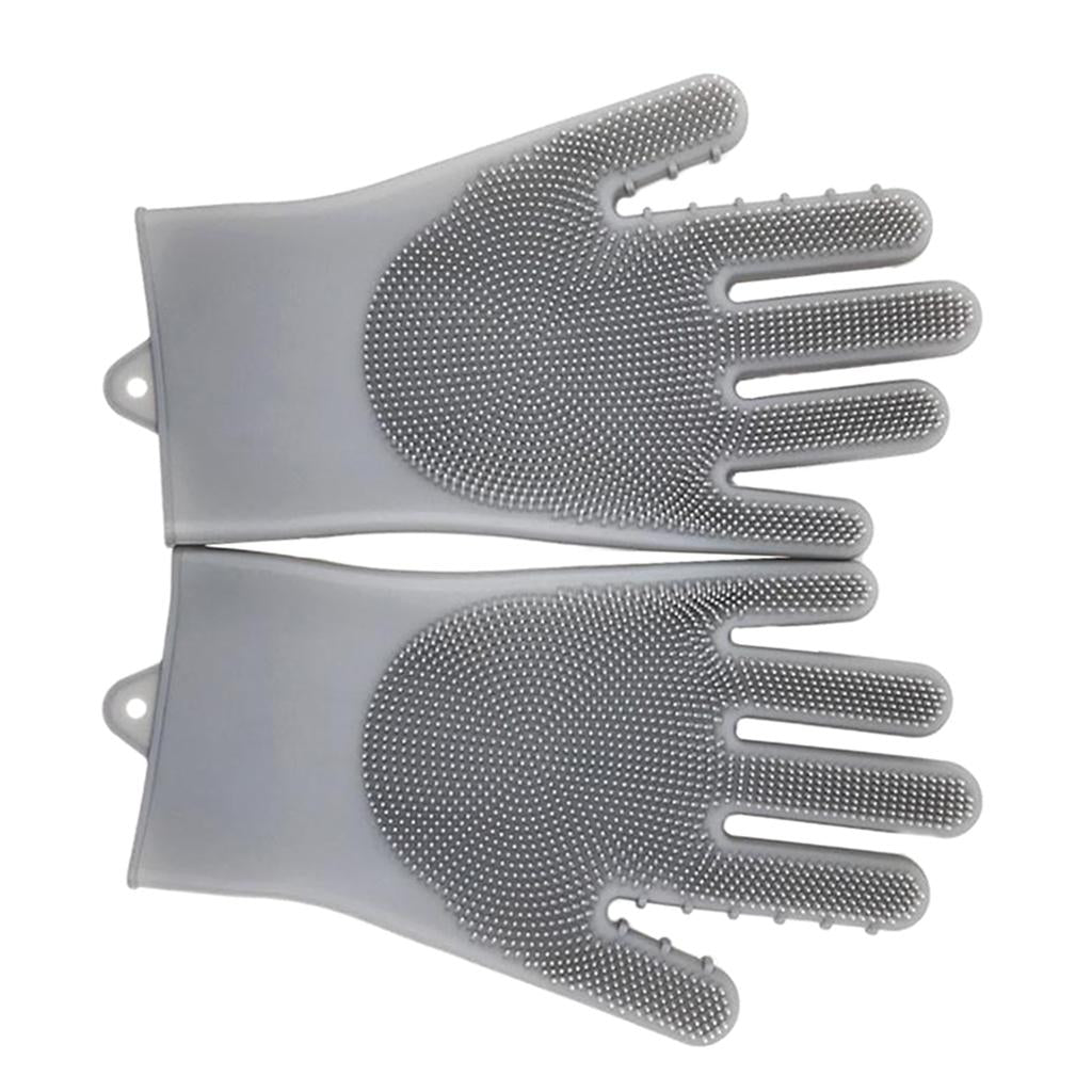 Max Silicone Dish Washing Cleaning Gloves Scrubber Household Kitchen Grey