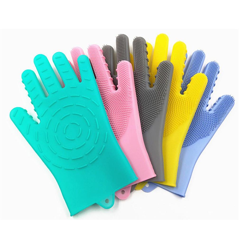 Upgraded silicone magic scrubber dishwashing gloves: Built-in anti-slip design, with scrubber