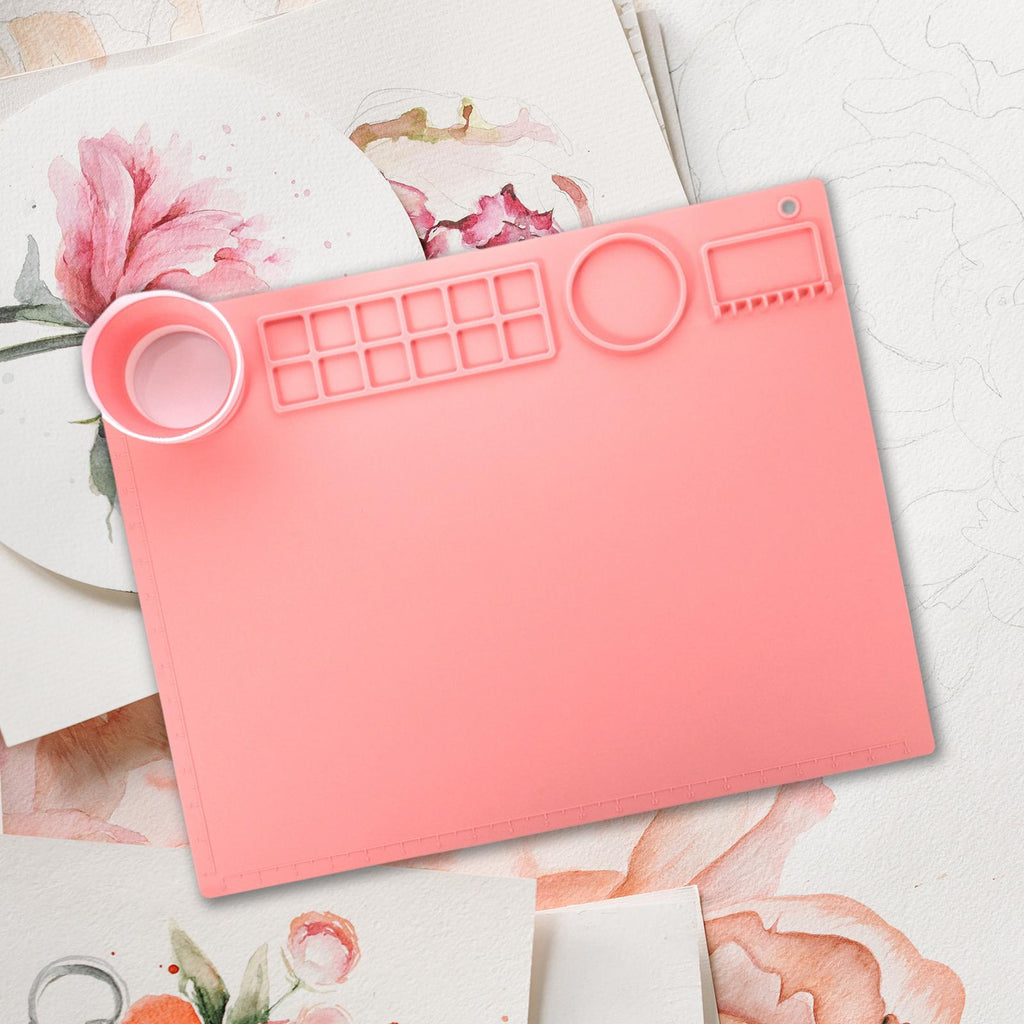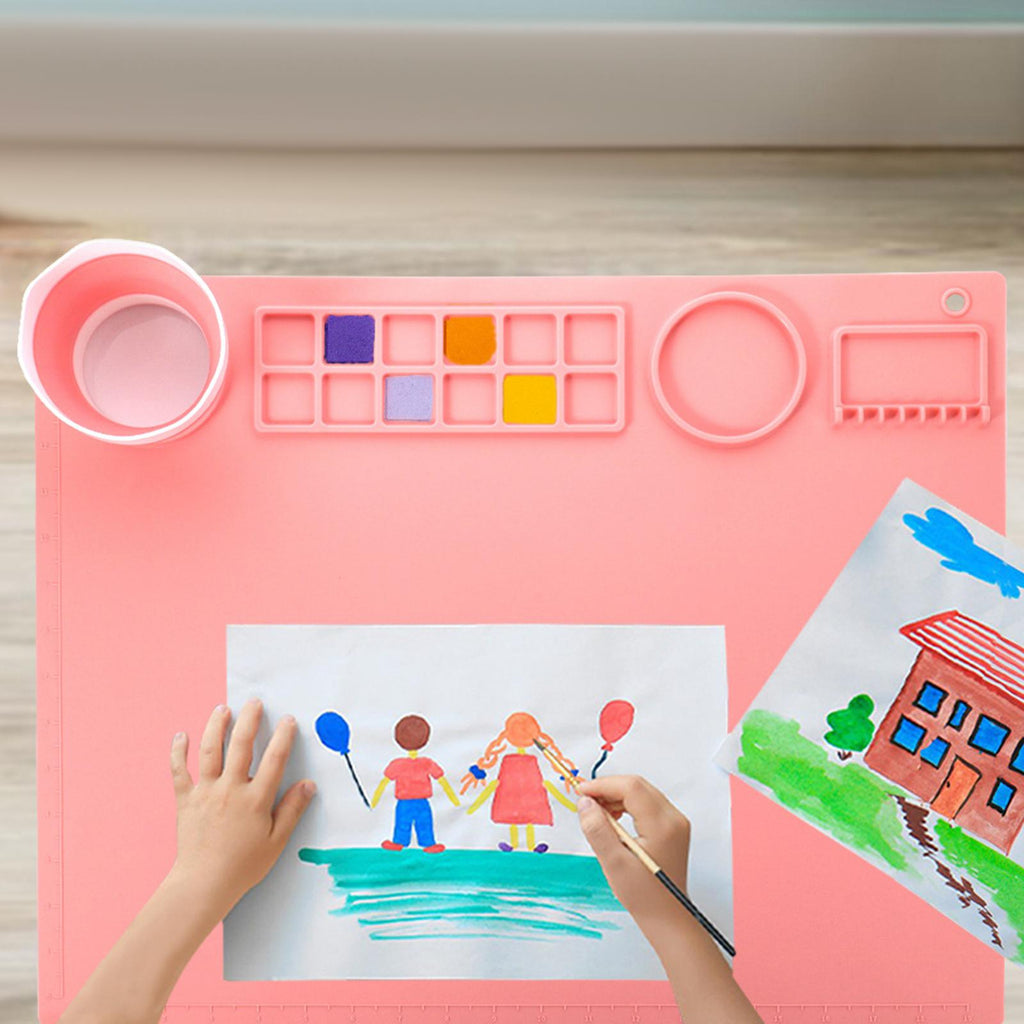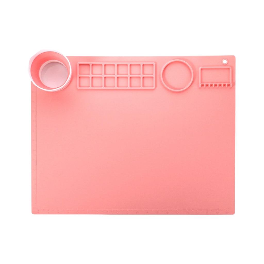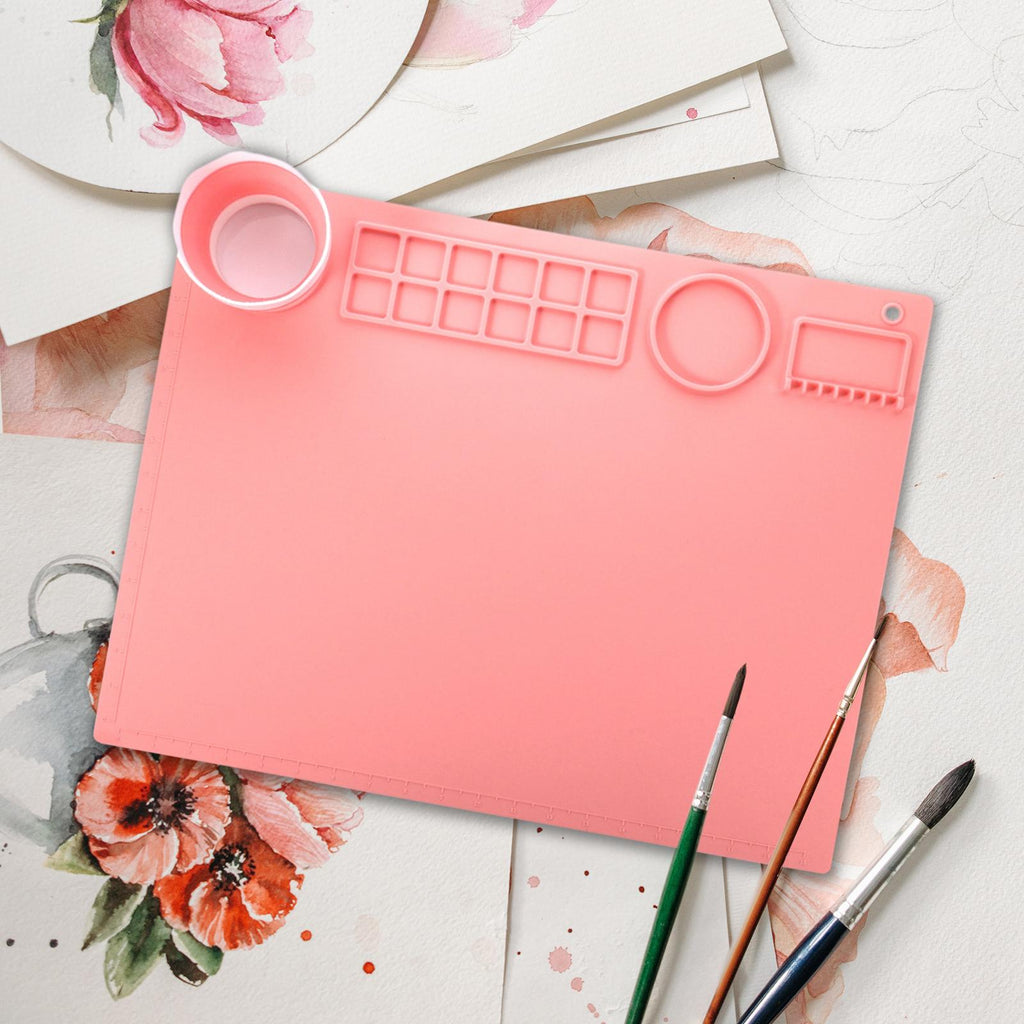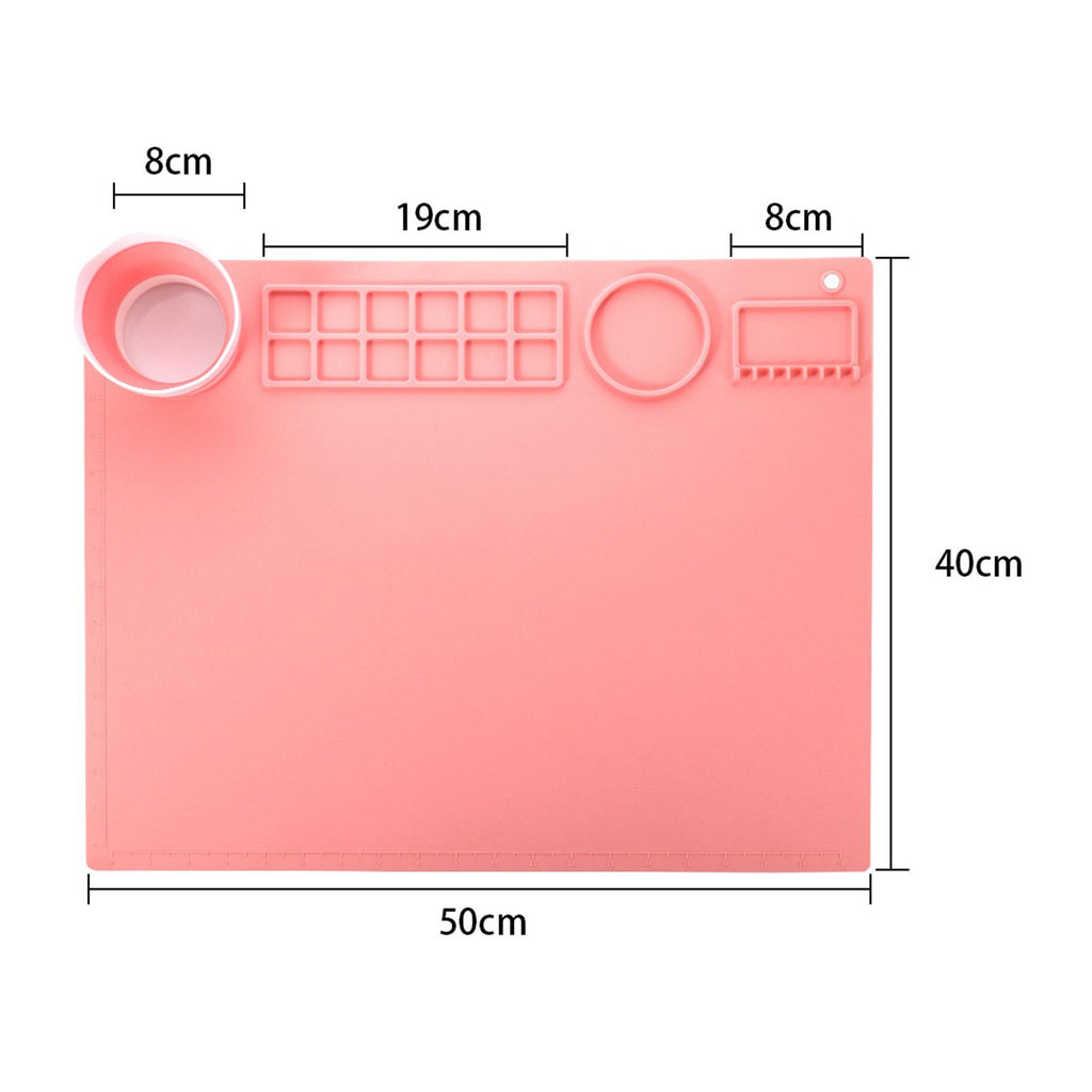 Maxbell Silicone Painting Mat with Cup 19.69"x15.75" Silicone Art Mat for Art Create Pink