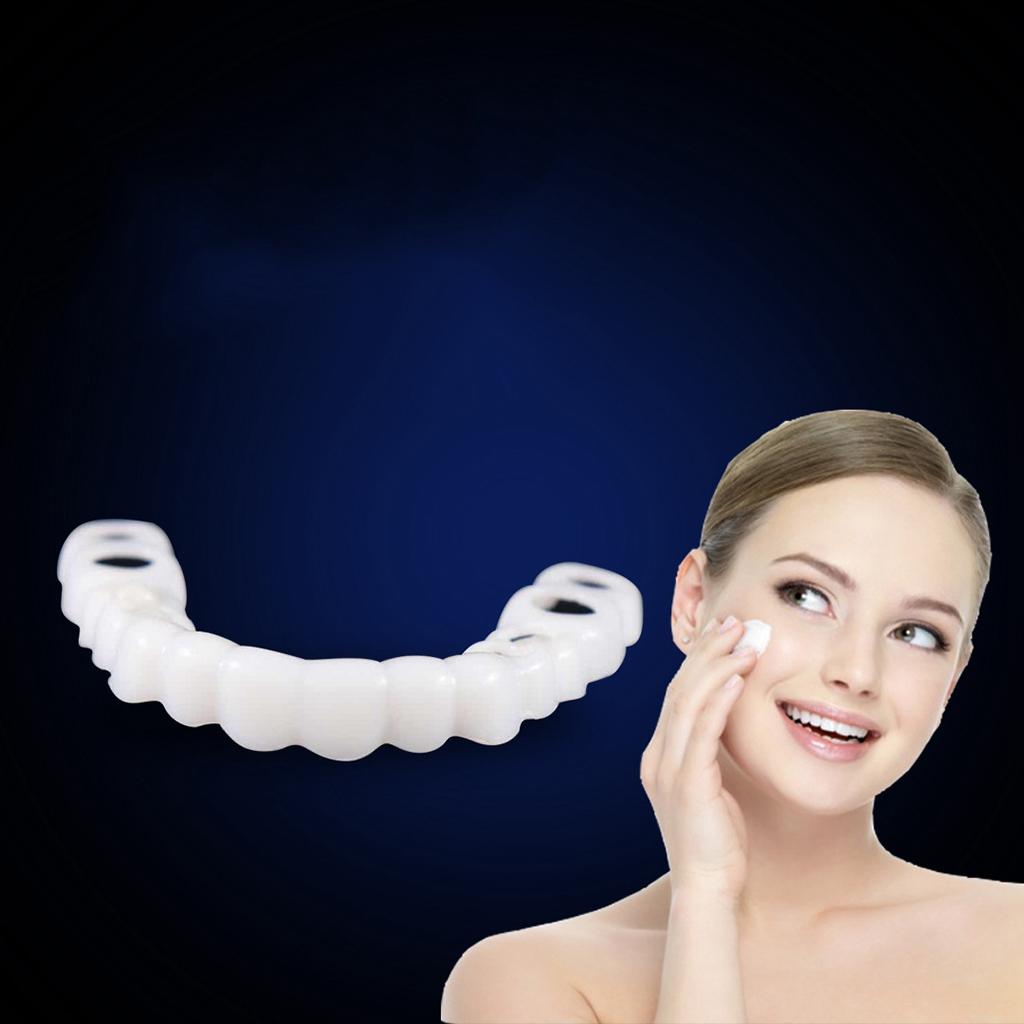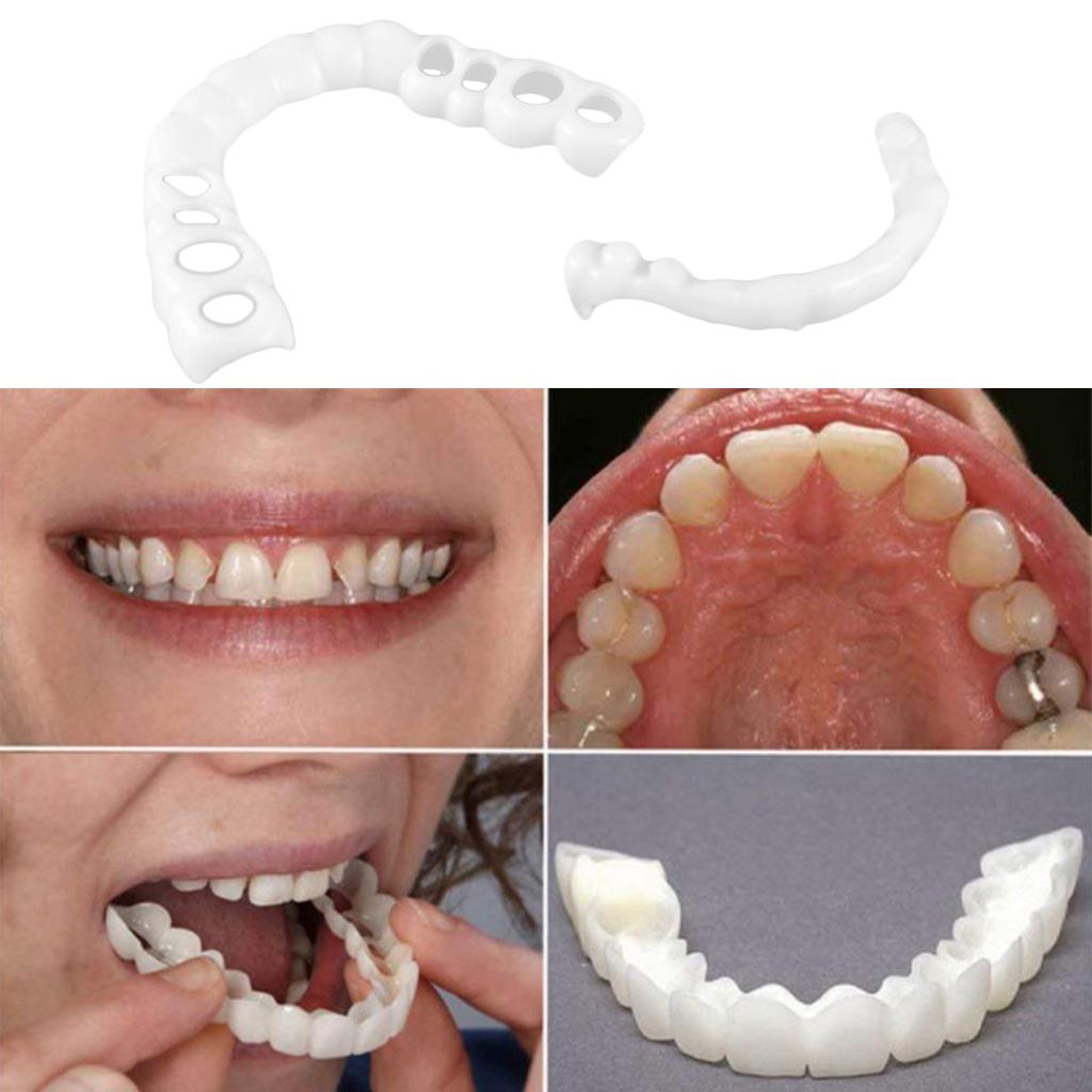 Silicone Upper/Lower False Teeth Dental Veneers Dentures Fake Tooth Upper