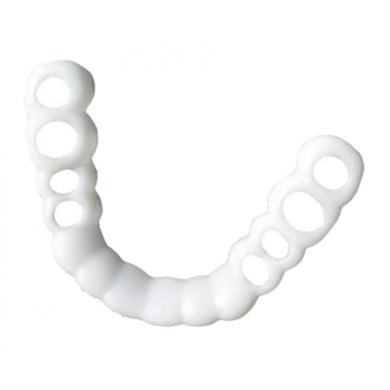 - -A special mould works to disguise crooked, stained, missing and gapped teeth.