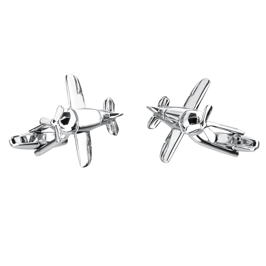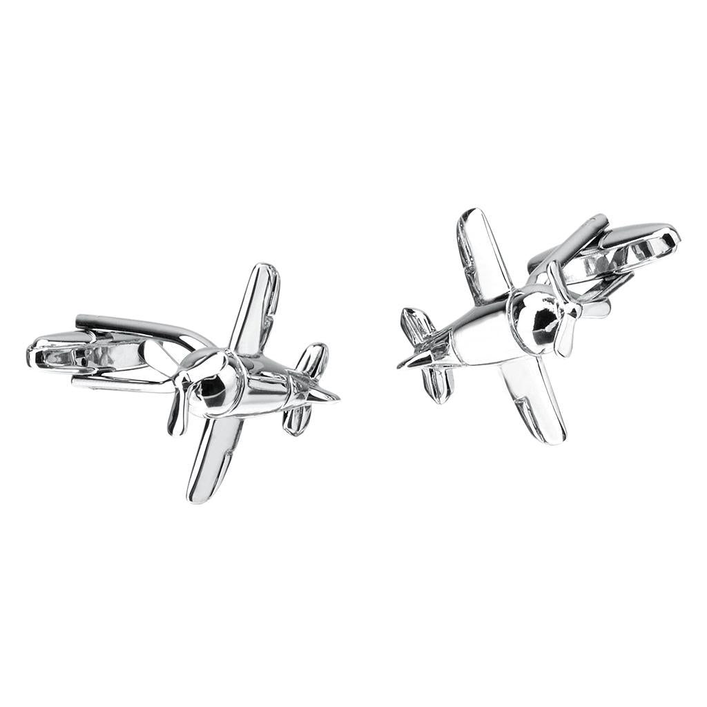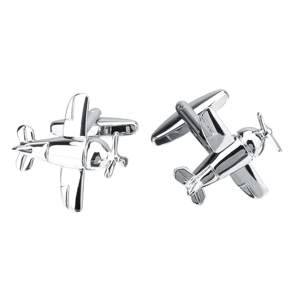 Maxbell Silver Brass Airplane Aircraft Shape Unique Cufflinks Mens Chic Cuff Links