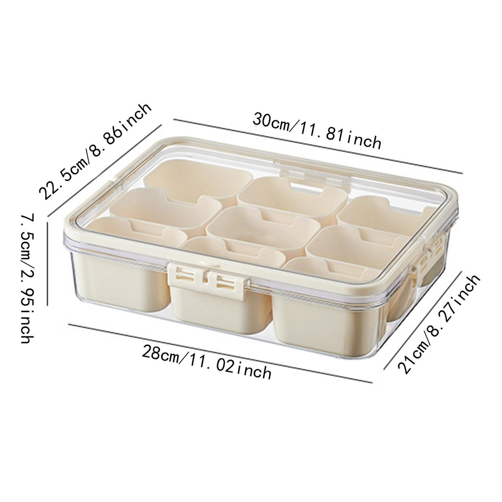 【Flexible and Practical】: Travel snack tray adopts a detachable split design, the single grid is detachable, the grid is adjustable, and it is easy to clean; the hidden handle design is beautiful and practical