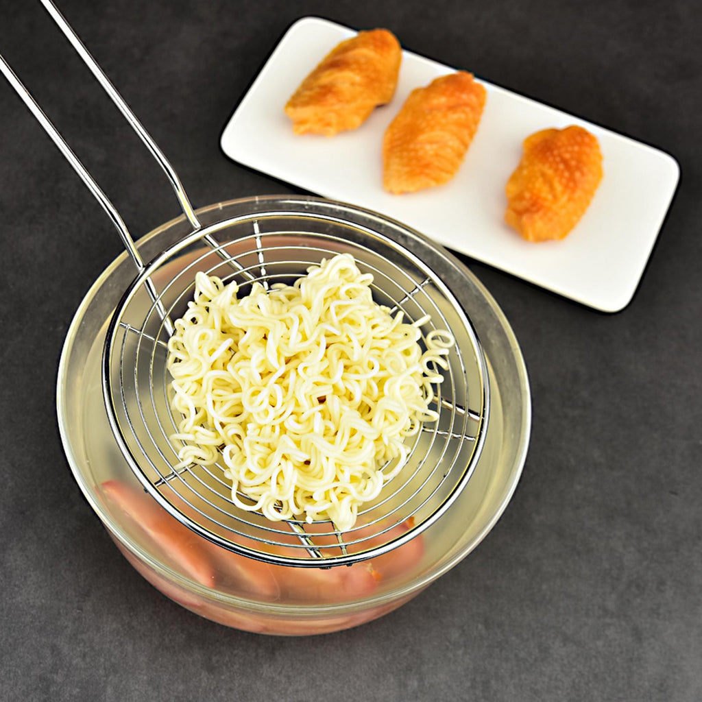 【Versatile Kitchen Tool】: This stainless steel skimmer is for a variety of cooking tasks, including scooping noodles, vegetables, deep fried foods, and hot pot ingredients