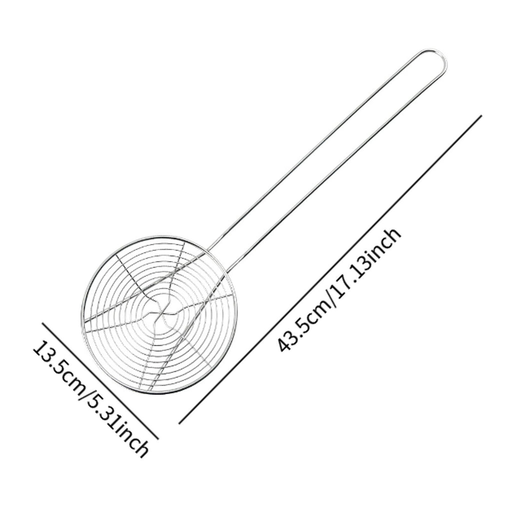 【Efficient Cooking】: With dimensions of 43.5cm/17.13inch in length and 13.5cm/5.31inch in diameter, this Strainer Spider Skimmer provides ample space to handle large quantities of food with ease