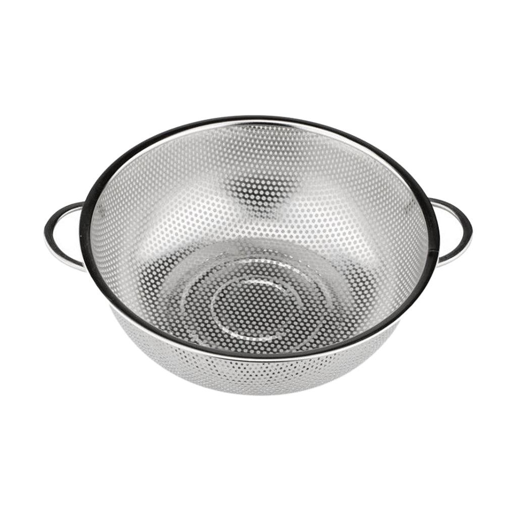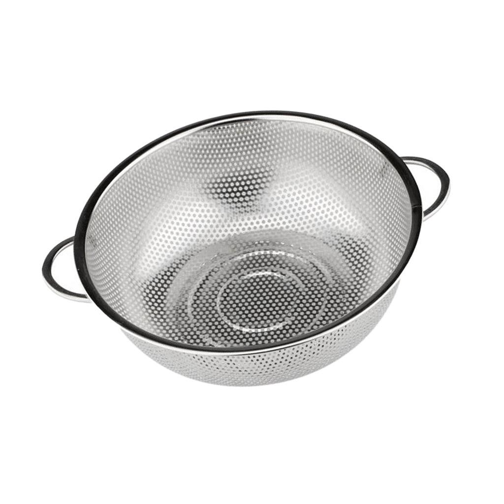 MICRO-PERFORATED: Tiny holes of the colander prevent Fall-Through, While Still Providing Quick Drainage. They allow water to pass easily but at the same time keeping all food in the colander. It goes with 3 legs on the bottom, which prevents the colander from tipping over. And it is wide enough to let water drain quicker and spend less time on cooking.