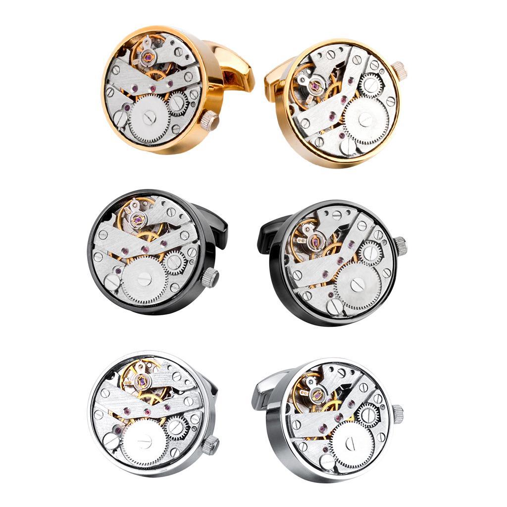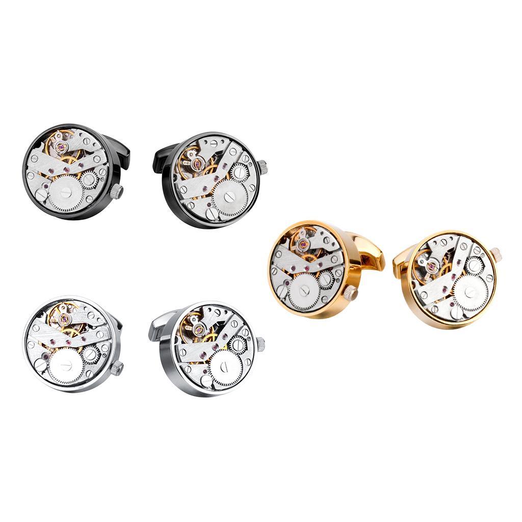 Maxbell Maxbell Steampunk Mechanical Movement Watch Gear Men Shirt Cufflink Gold