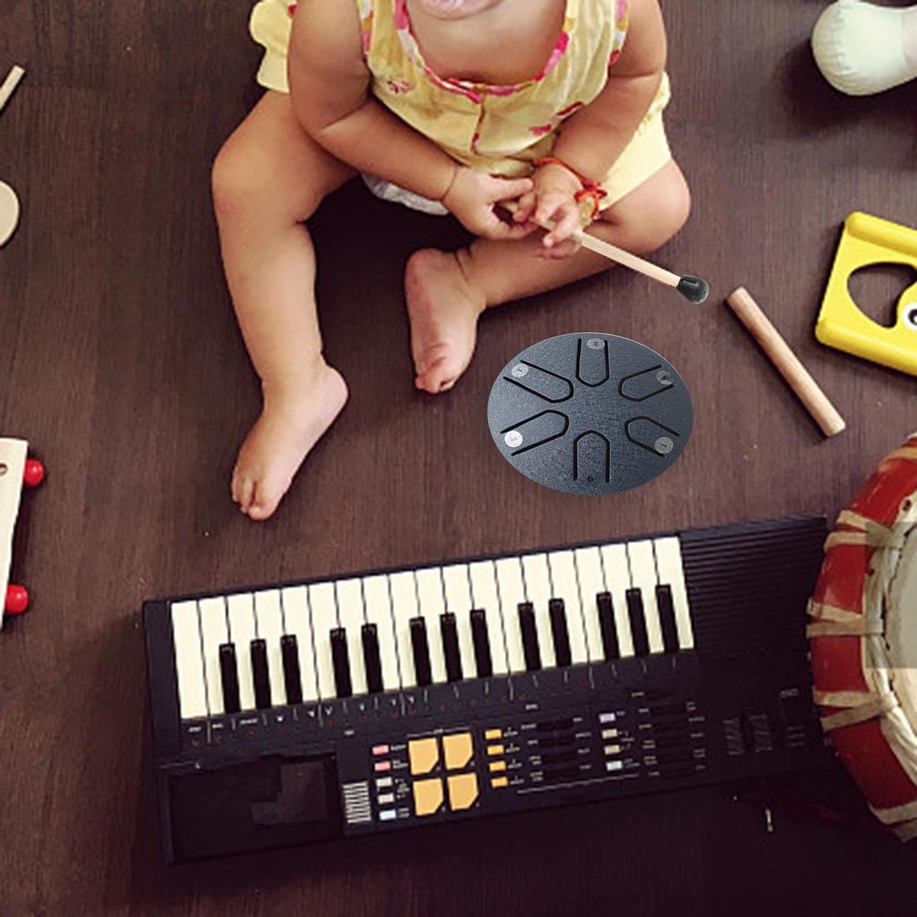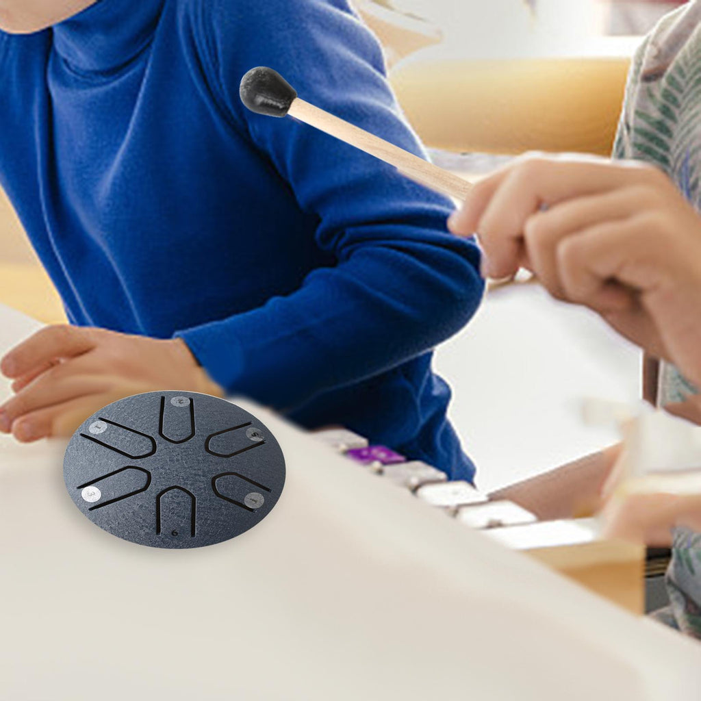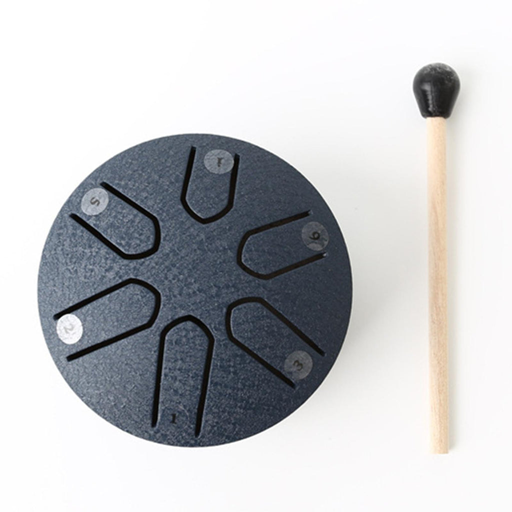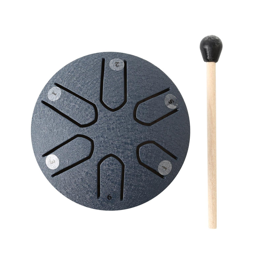 Unique Design: 3 inch 6 notes mini steel tongue drum, portable, with protective paint finish to protect against tarnish, scuffs, and scratches .