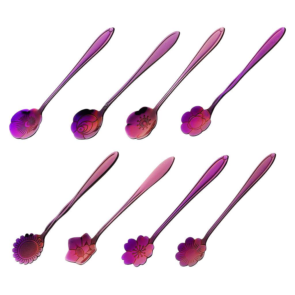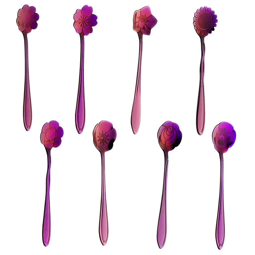 Maxbell Teaspoon Set of 8 Teaspoons Coffee Tea Spoon Sugar Spoon Stainless Purple
