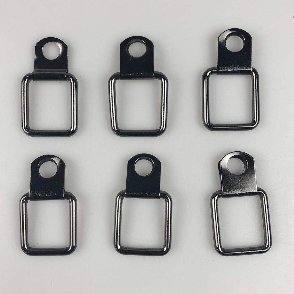 Robust metal D-rings with heavy workload, black color with Anti-rust coating.