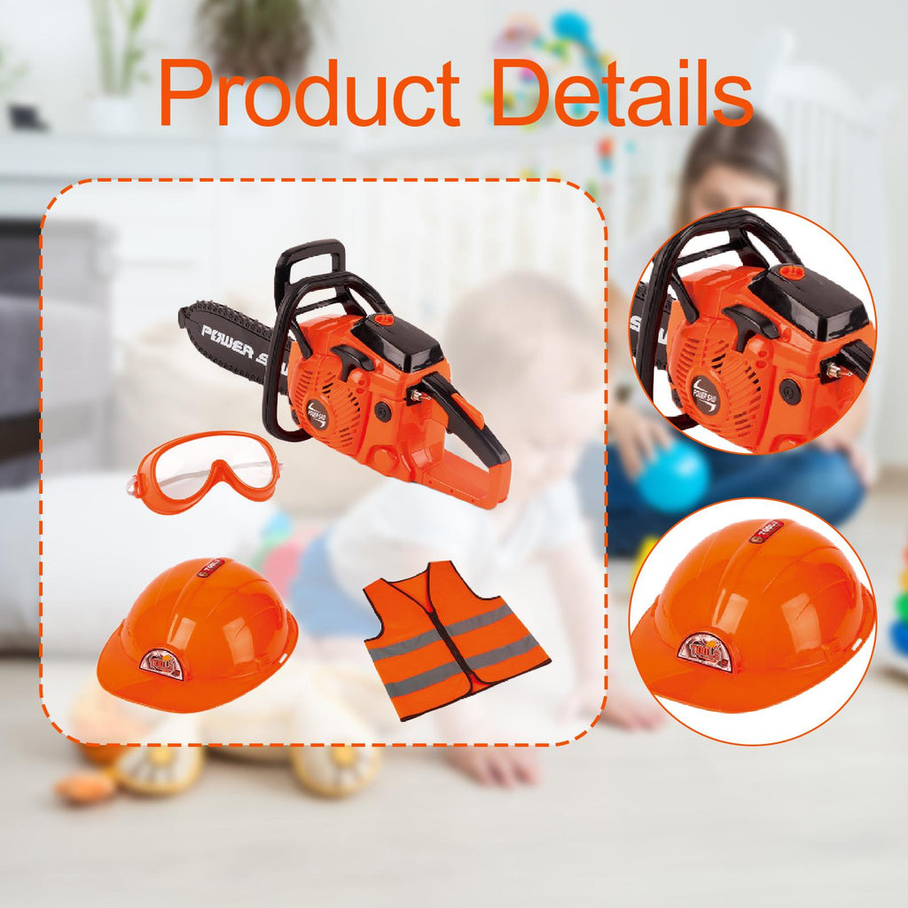 【Realistic Play Experience】: This toy chainsaw set features authentic chainsaw, providing a realistic play experience that will captivate your child's inventiveness as they role play as a lumberjack or handyman