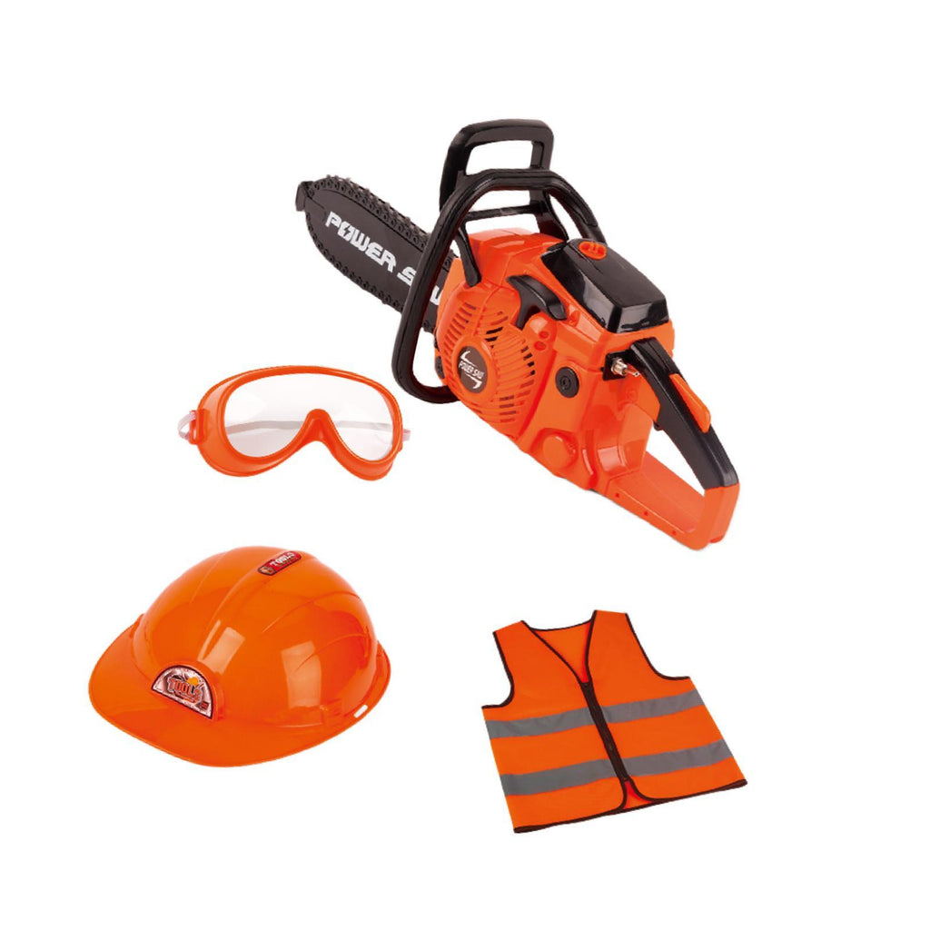 【Complete Set for Role Play】: The package includes 1 electric saw and a pair of goggles, 1 work clothes, and a hat, chainsaw requires 3 AA batteries (not included), encouraging security play while allowing children to fully immerse themselves in their role playing scenarios