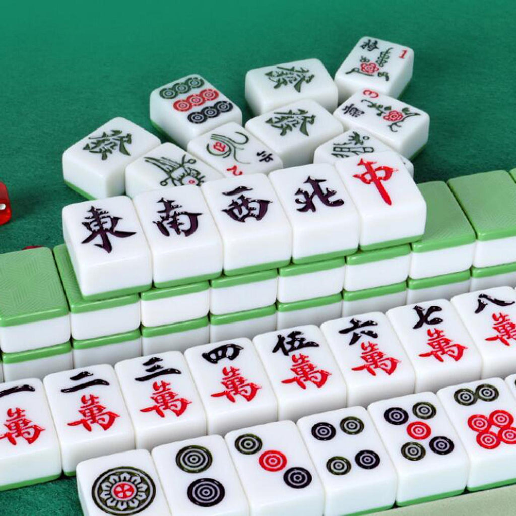 Maxbell Travel Mini Mahjong Board Game, 144 Tiles Mahjong for Outdoor Gathering Home Green