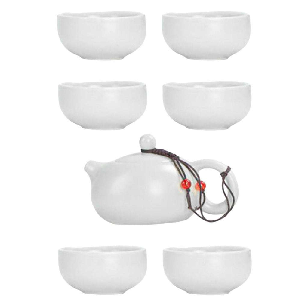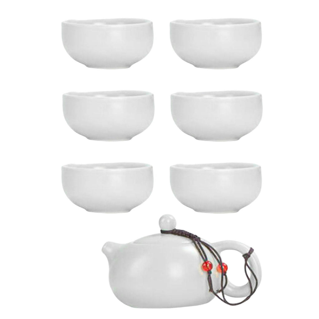 Maxbell Travel Tea Set Practical with Case Ceramic Teapot for Camping Office Outdoor White 6 Cups