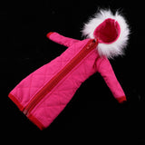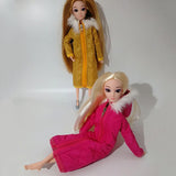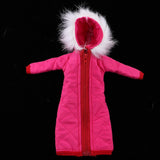 Comfortable long cotton-padded coat with fluffy hat for 1/6 girl doll winter clothes dress up accessories