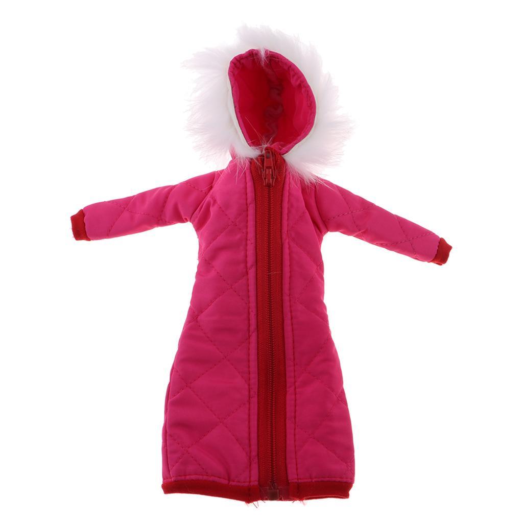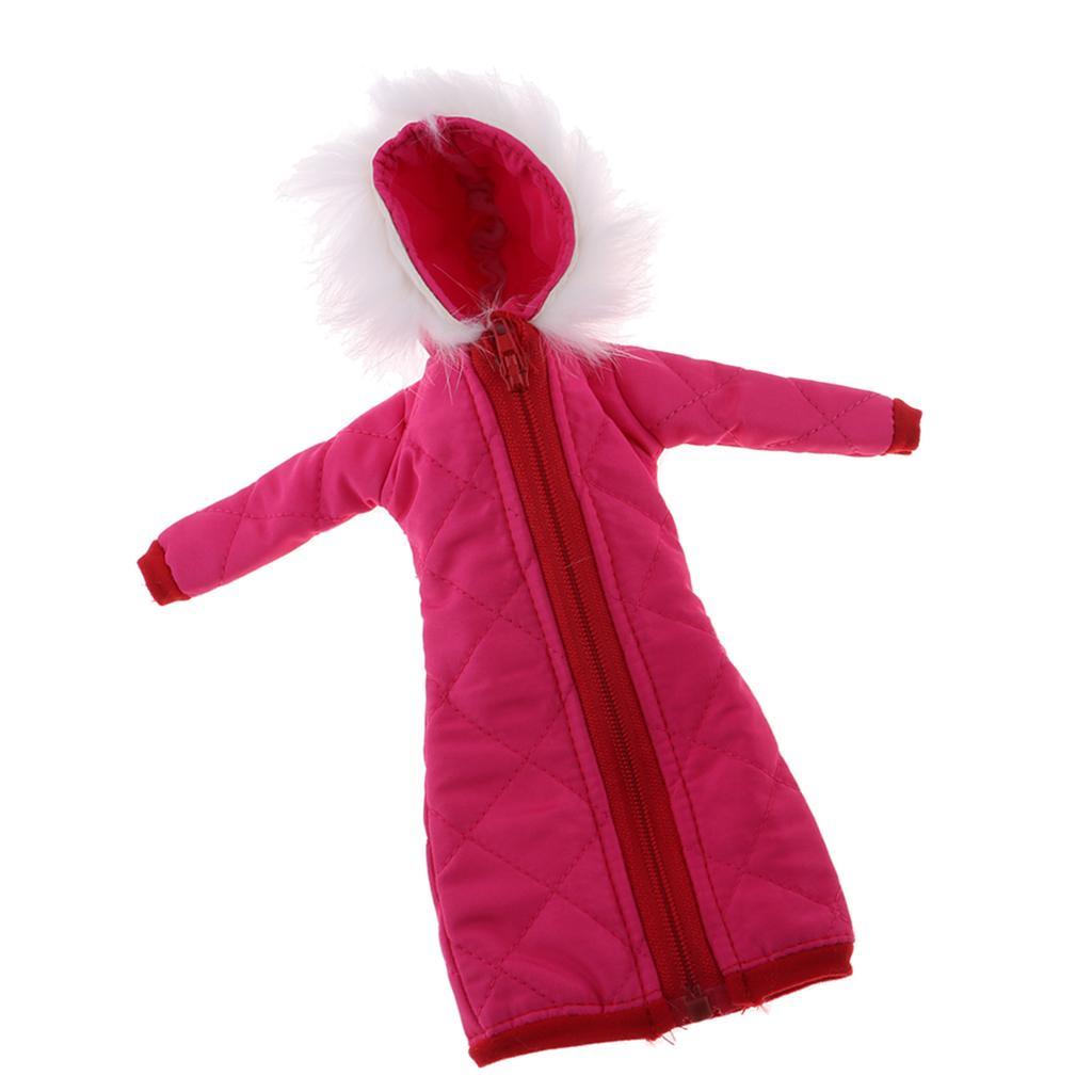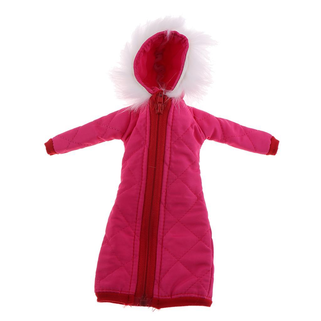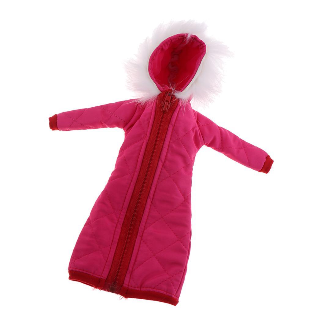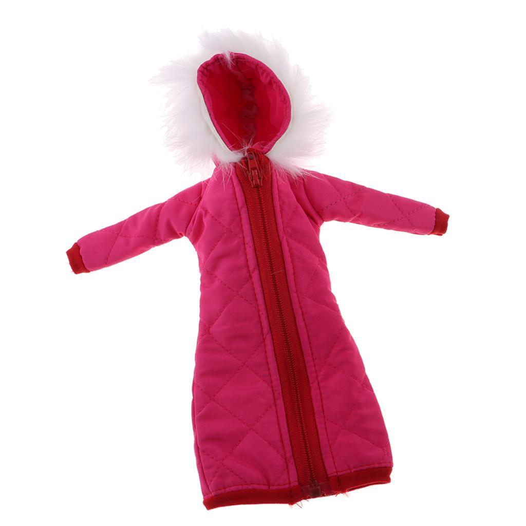 Maxbell Trendy Long Padded Jacket Coat for 1/6 Doll Winter Outfit Accessory Rose Red