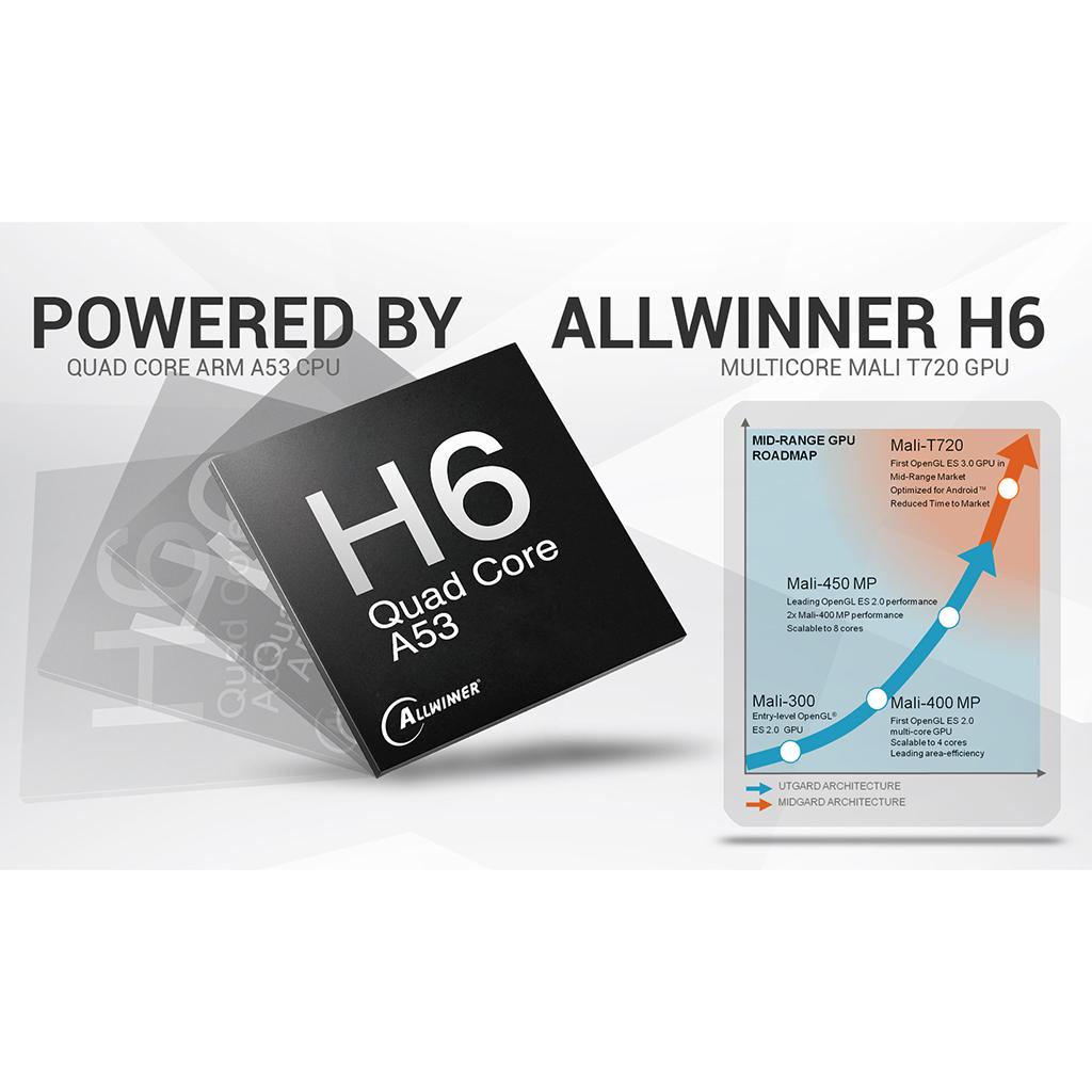 1,Allwinner H6 Quad Core ARM Cortex A53 up to 1.5GHz