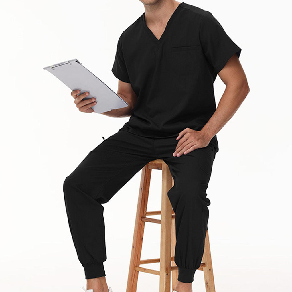 Maxbell Uniform Scrub Set for Men Top and Pants V Neck Soft Workwear for Cosmetology Black M