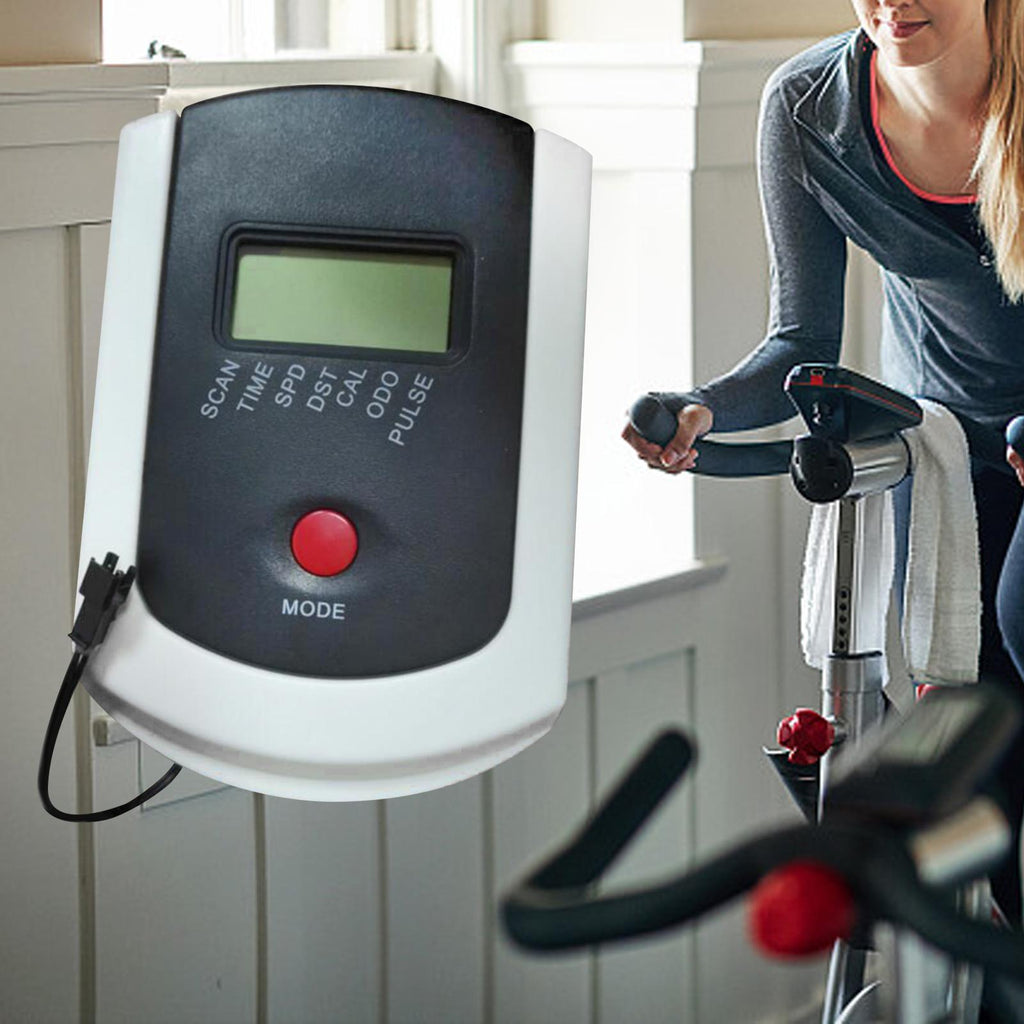 USAGE: Press the buttons to display the time, speed, distance, calories.